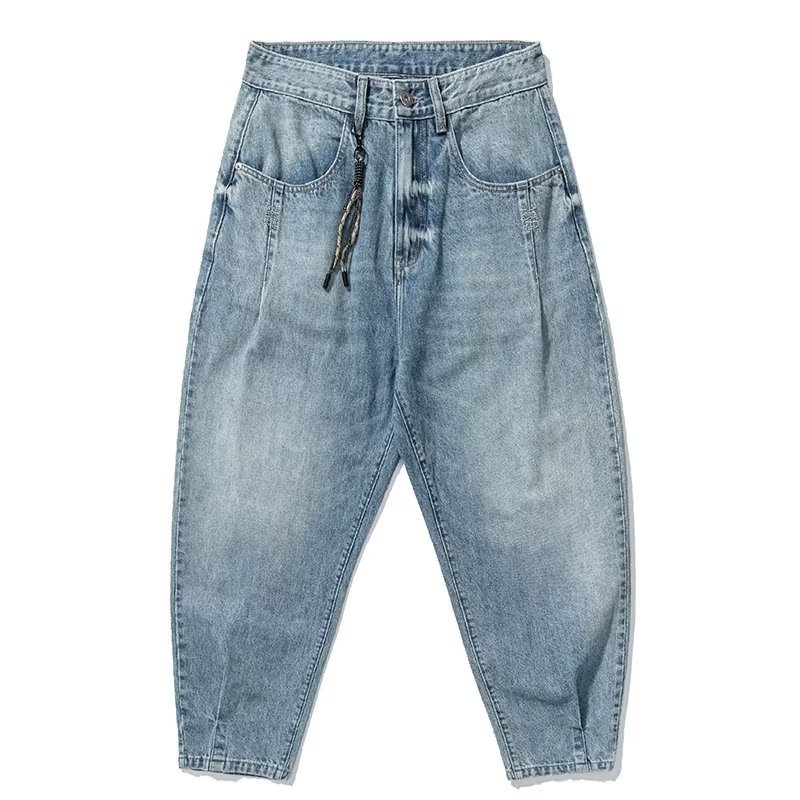 미국 빈티지 프록 플러스 사이즈 청바지 남성용 가을 새 느슨한 씻은 넓은 다리 하렘 트렌디 남성복