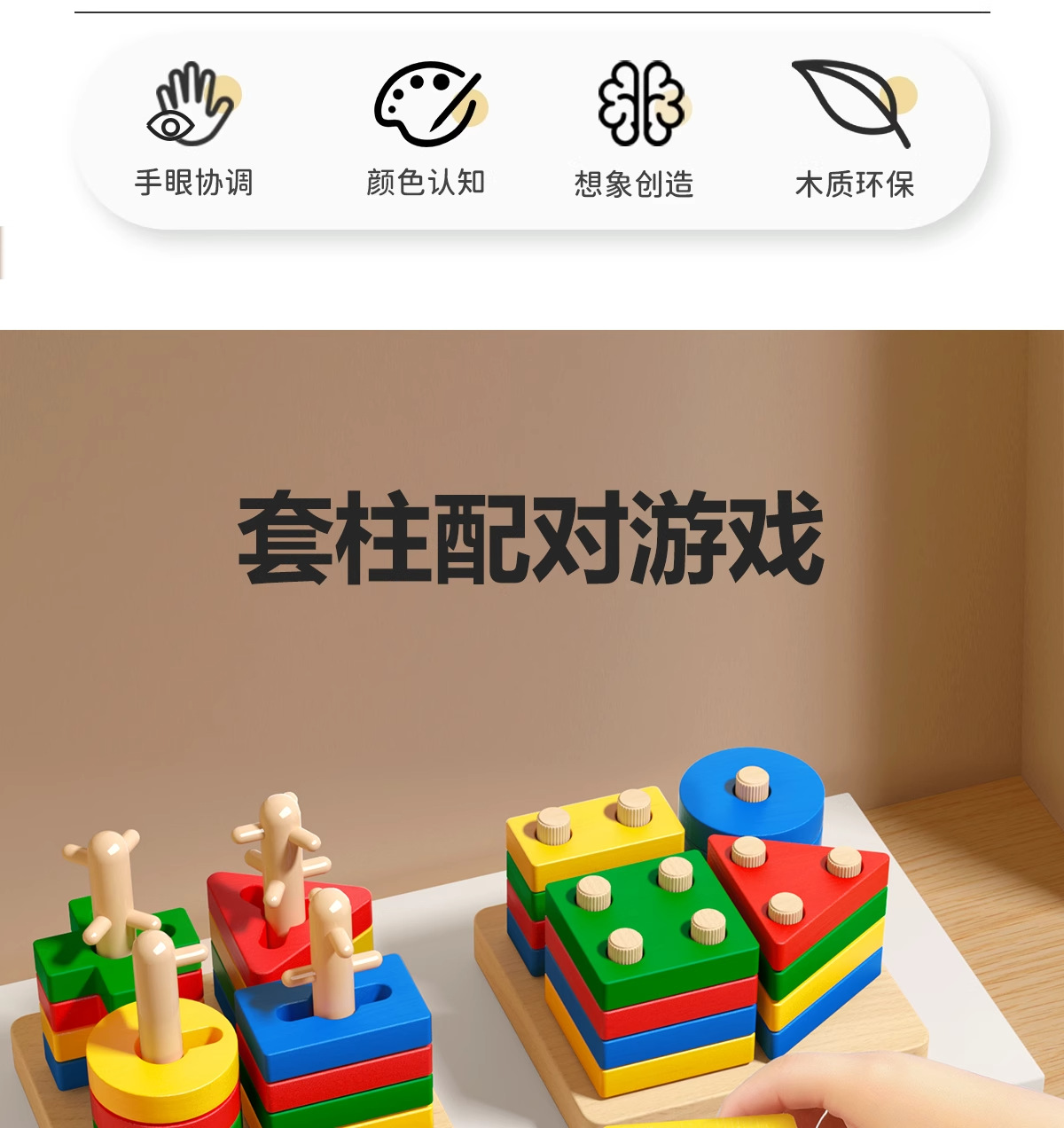 몬테소리 조기 교육 기구 기하학 세트 기둥 유아 조립 블록 1세 3세 남아 장난감 아기 모양 맞추기 퍼즐스토어 가기