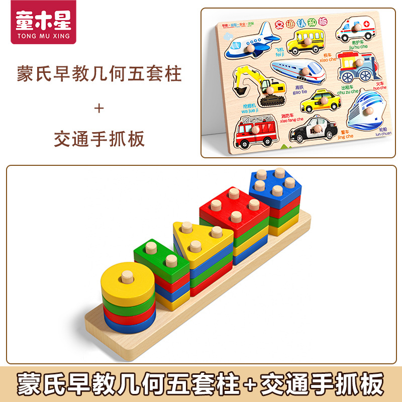 몬테소리 조기 교육 기구 기하학 세트 기둥 유아 조립 블록 1세 3세 남아 장난감 아기 모양 맞추기 퍼즐