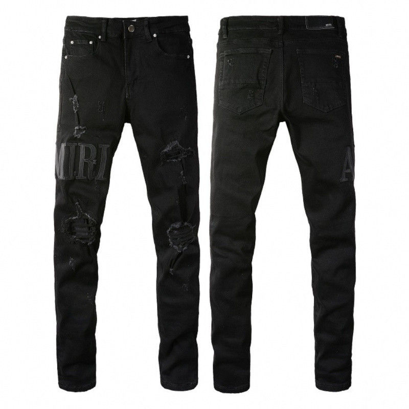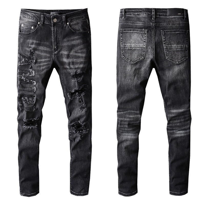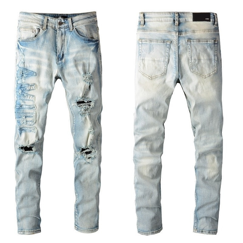 유럽과 미국의 하이 스트리트 로고 블랙홀 편지 자수 패치 슬림-적합 탄성 스키니 청바지 남성 트렌디 615스토어 가기