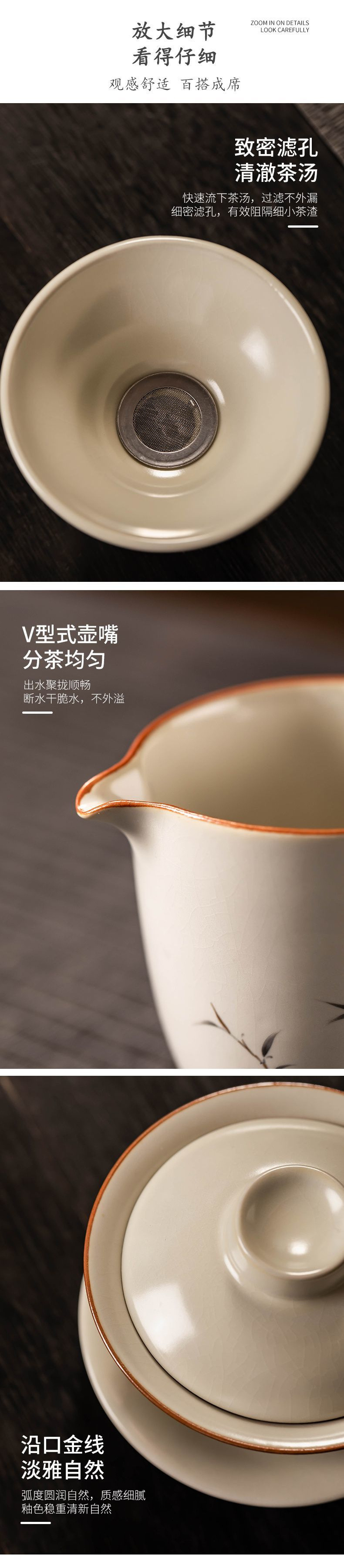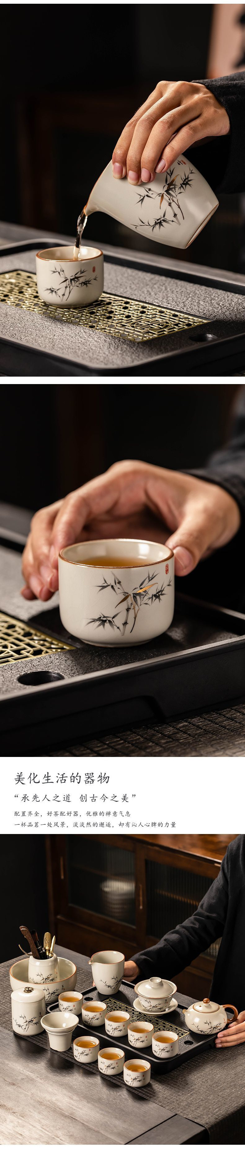 고급 Ru 가마 쿵푸 차 세트 세트 홈 오피스 리셉션 새로운 주전자 뚜껑 그릇 티 컵 완료 세트