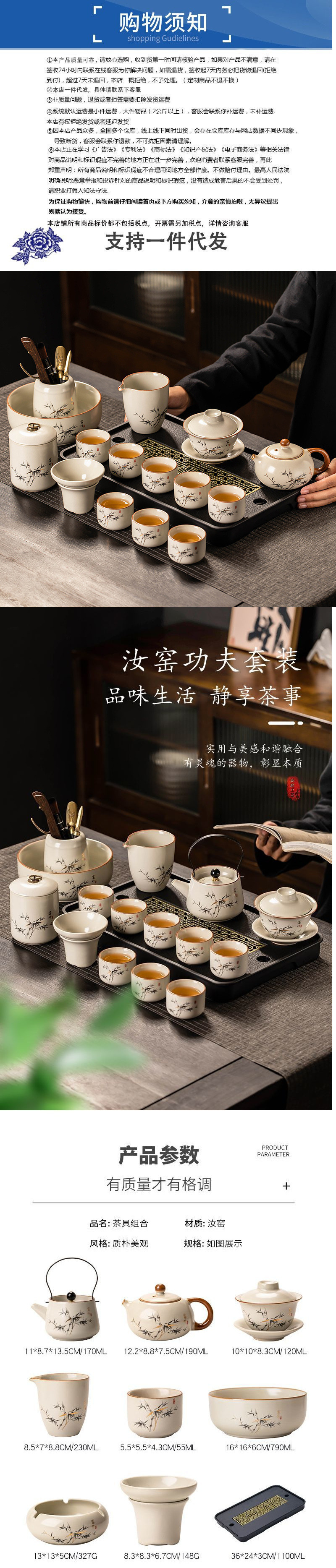 • 작은 Ru Kiln Fuzhu Xishi 냄비와 그릇 8컵 13피스 흐름 창 트레이 세트