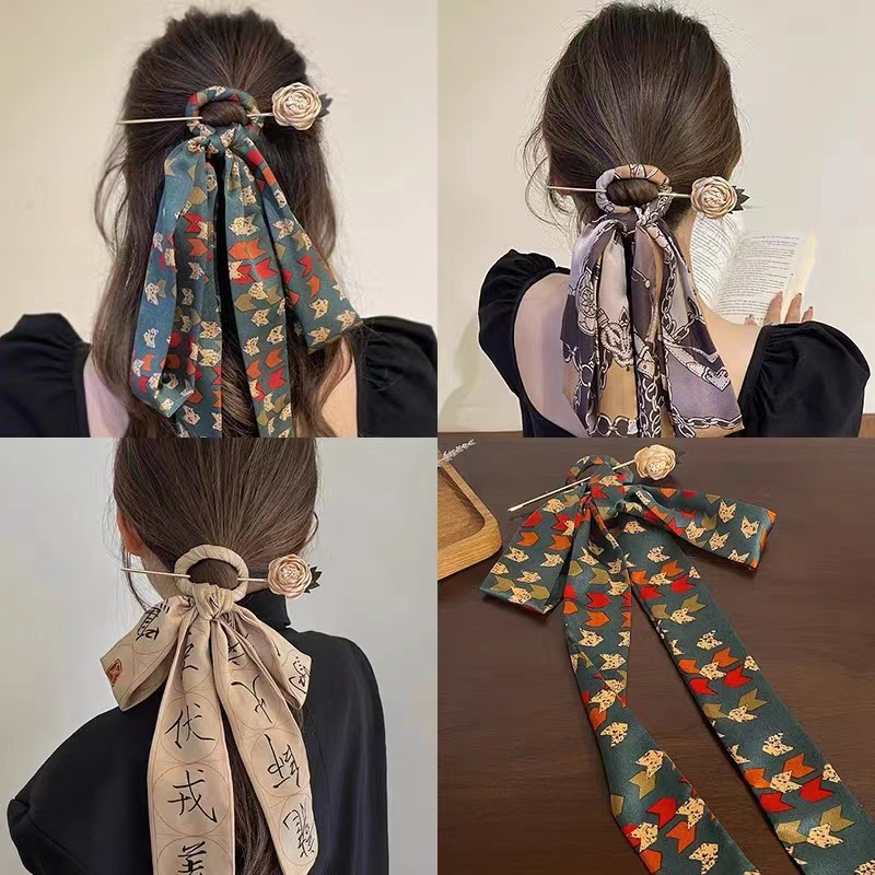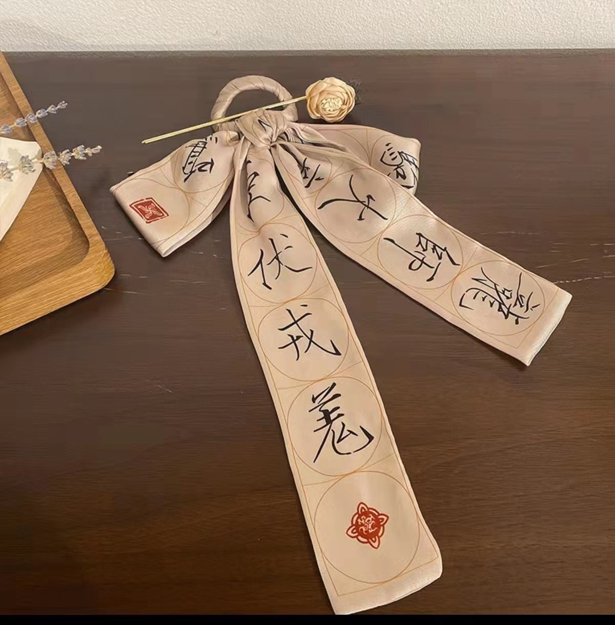 천 문자 새로운 중국 스타일 헤어핀 리본 골동품 한후 실크 스카프 요정 스타일 틈새 헤어 액세서리 활 헤드폰 장식