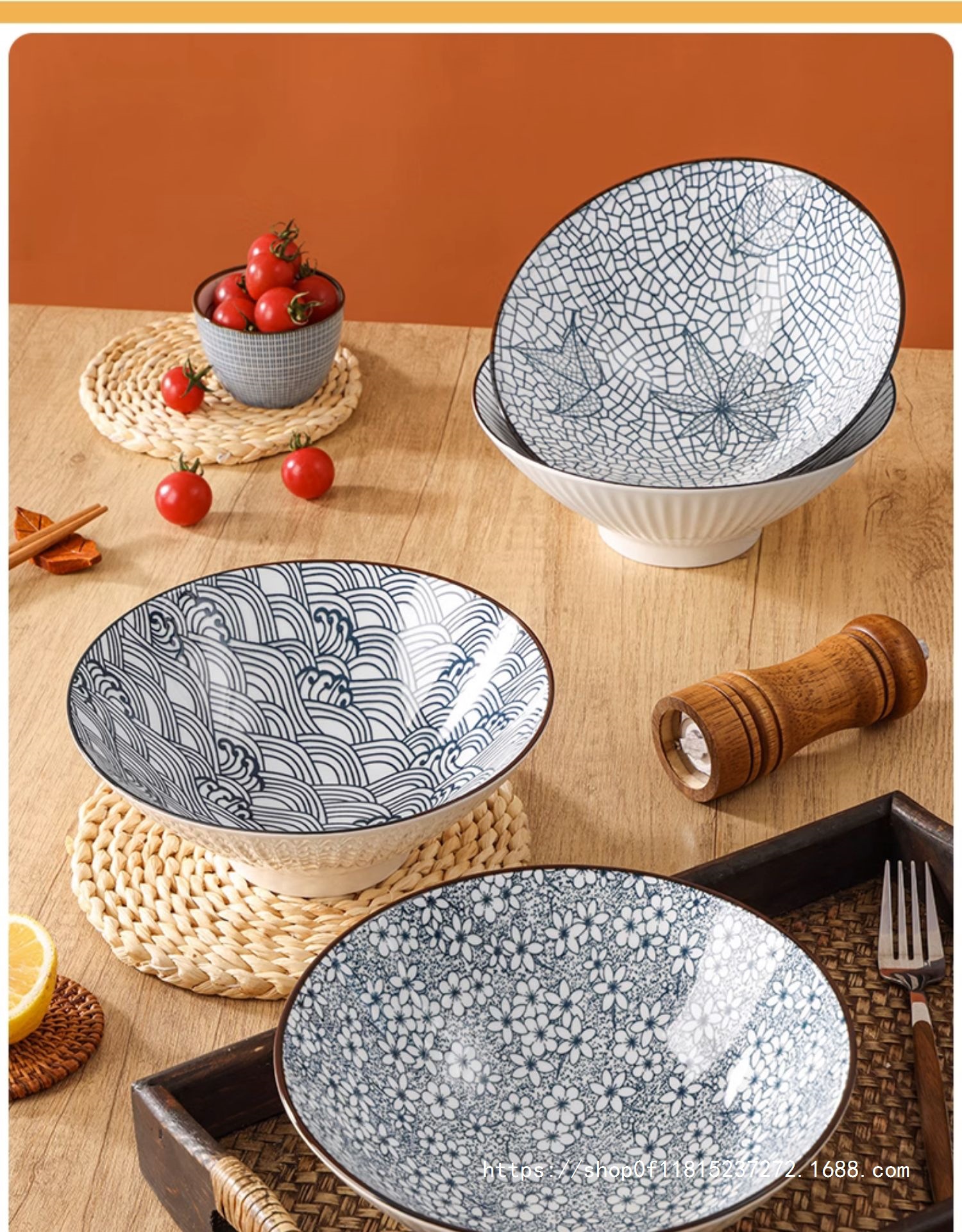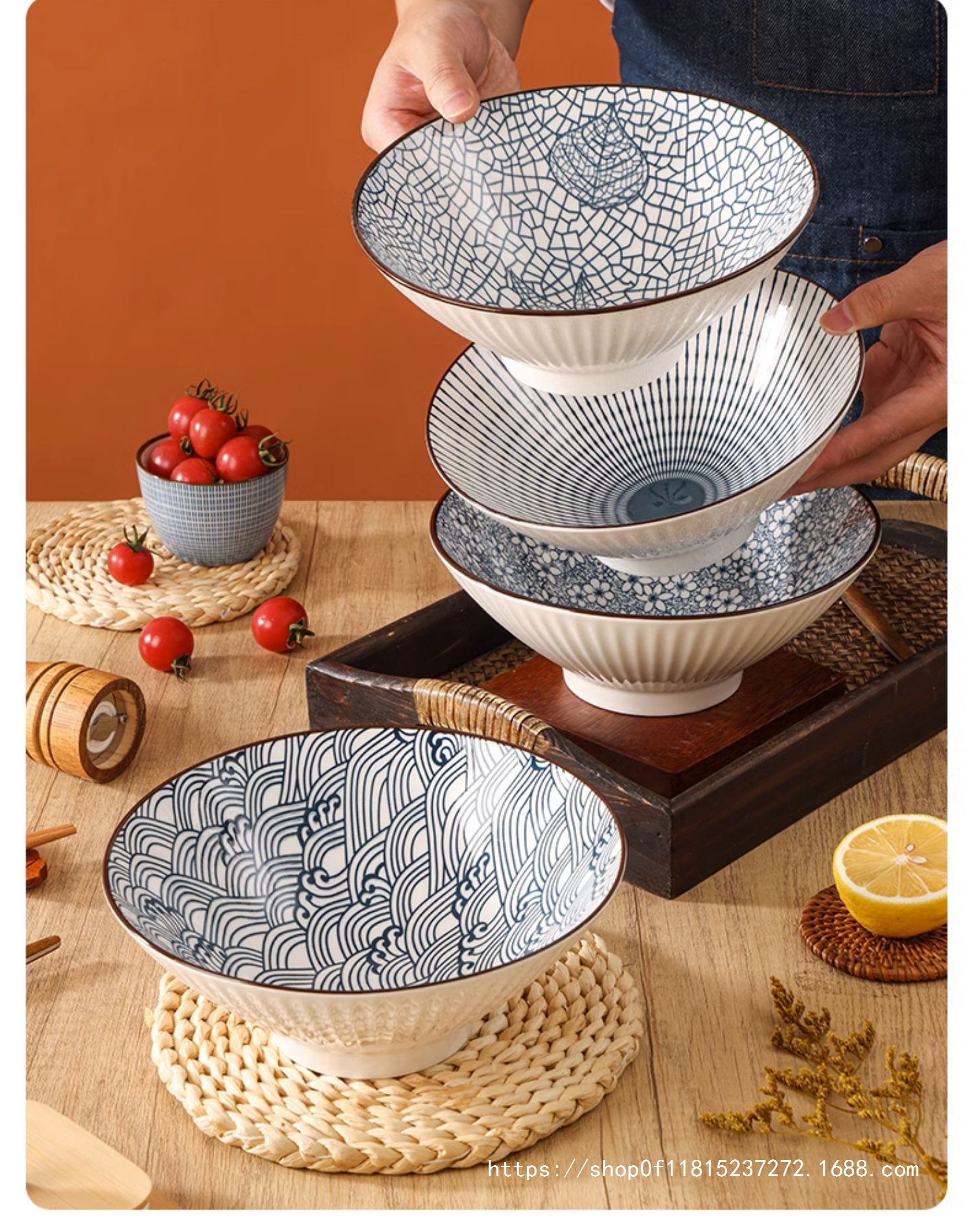 일본식 국수 그릇 가정용 대형 보울 경적 그릇 세라믹 버킷 보울 란 국수 그릇 특별 고급 국수 그릇 식기 세트스토어 가기