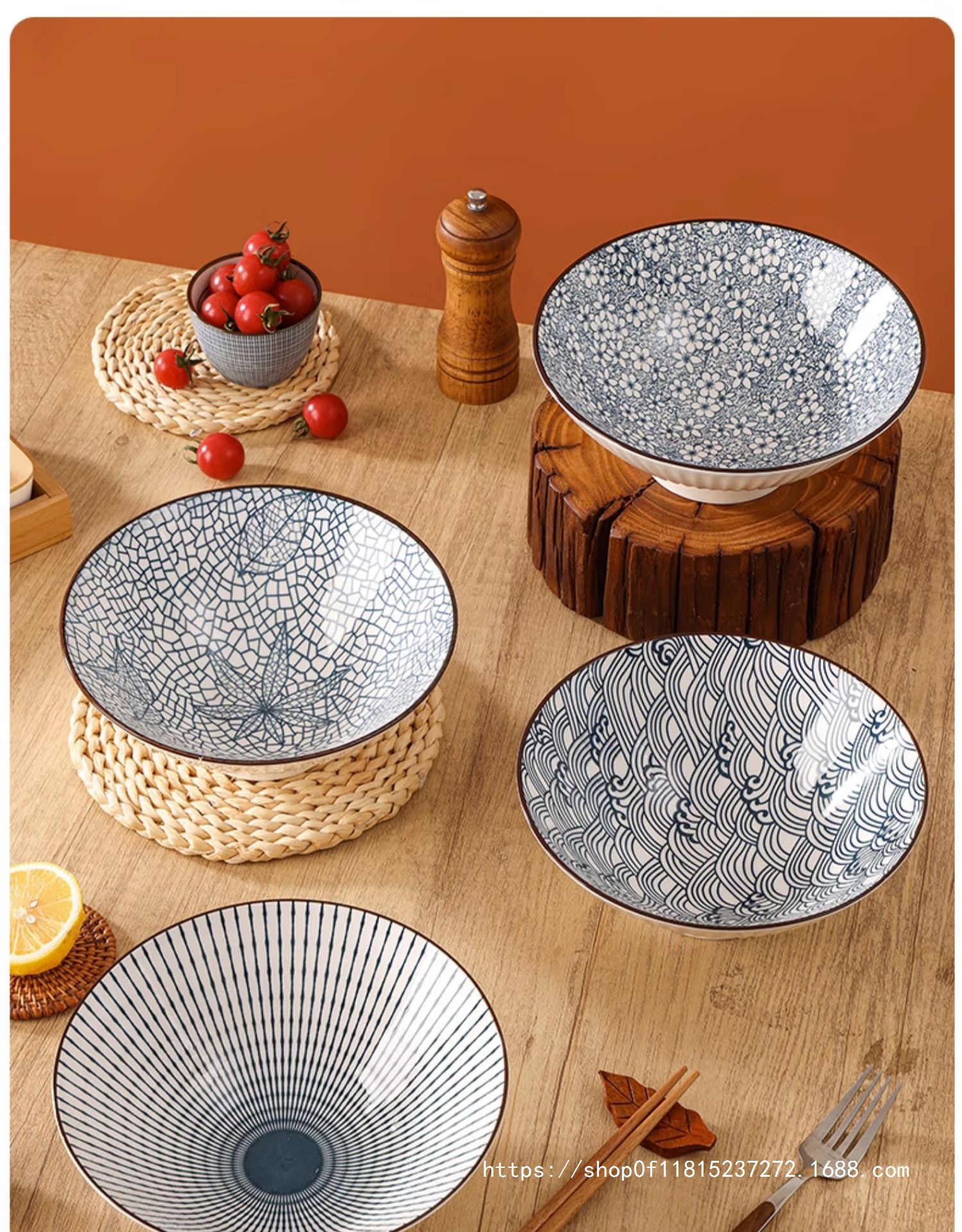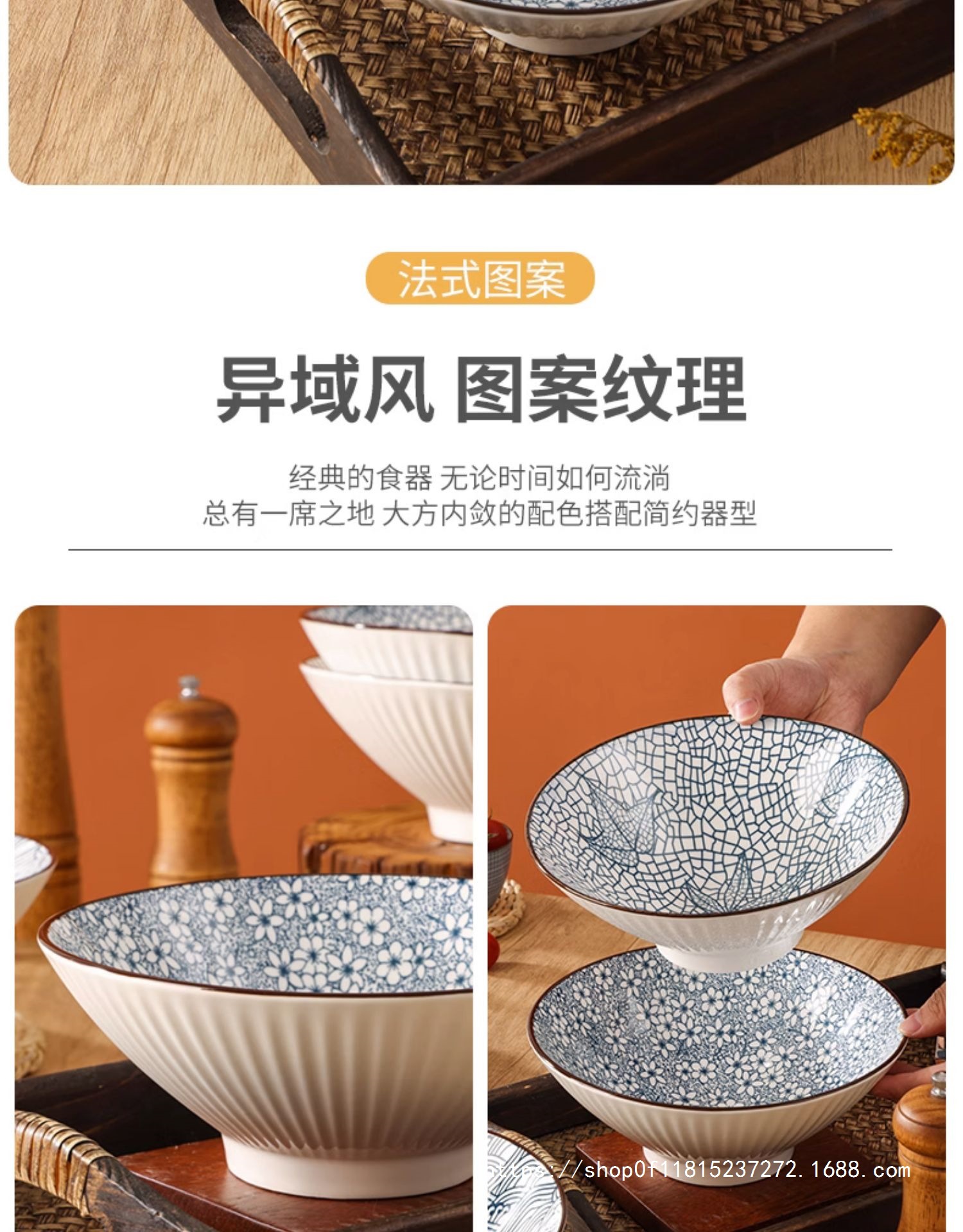 일본식 국수 그릇 가정용 대형 보울 경적 그릇 세라믹 버킷 보울 란 국수 그릇 특별 고급 국수 그릇 식기 세트