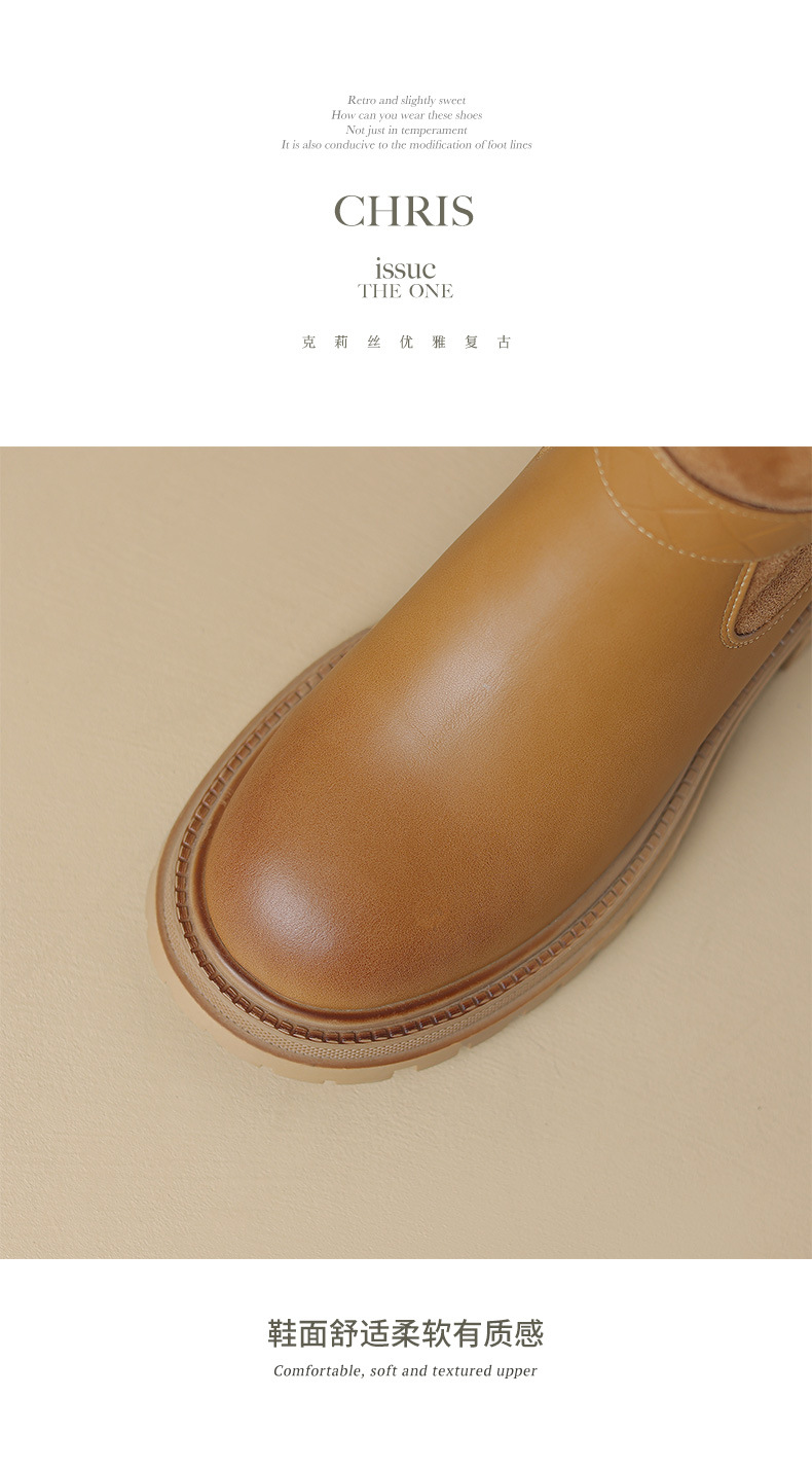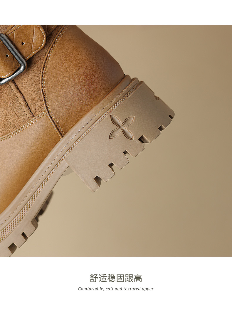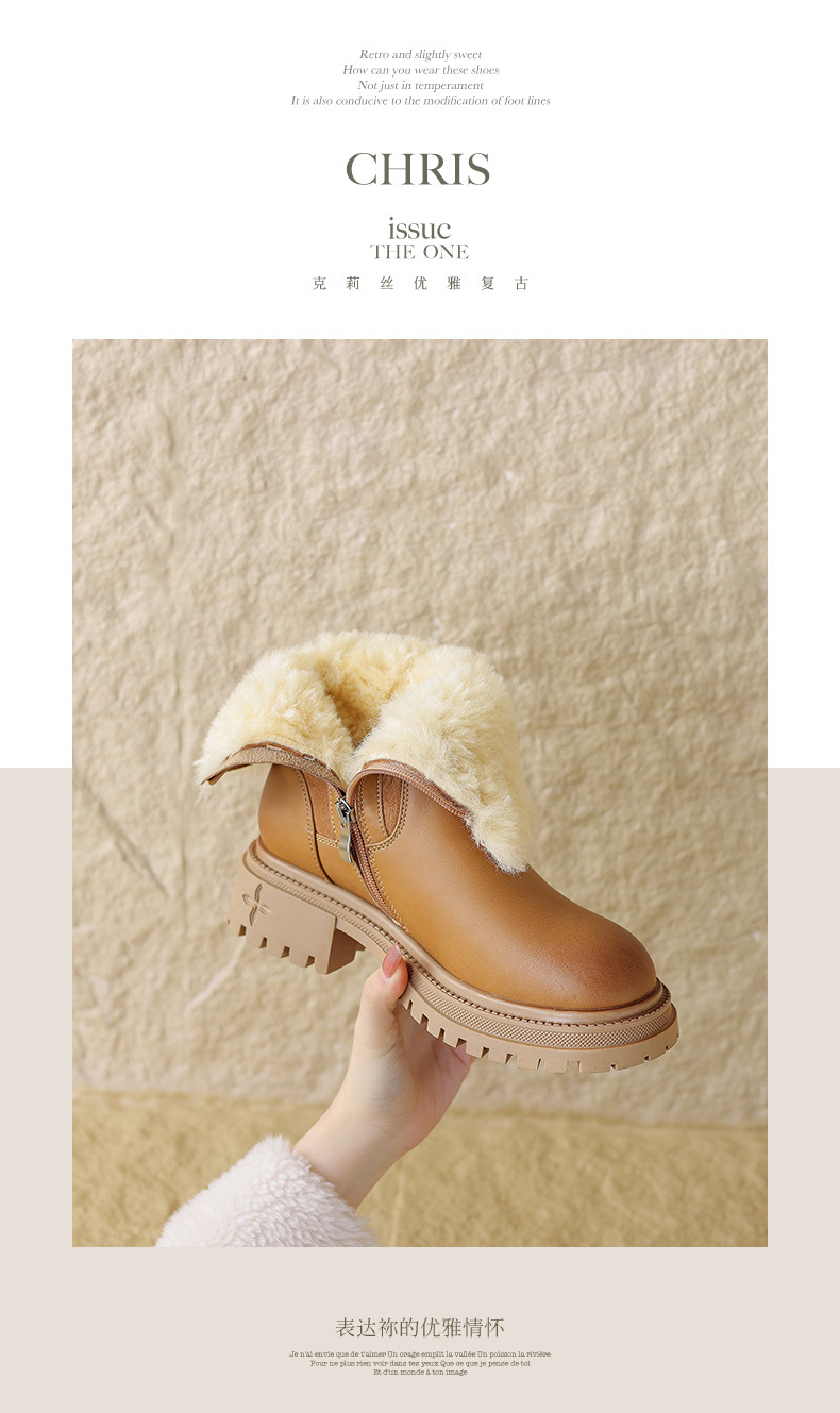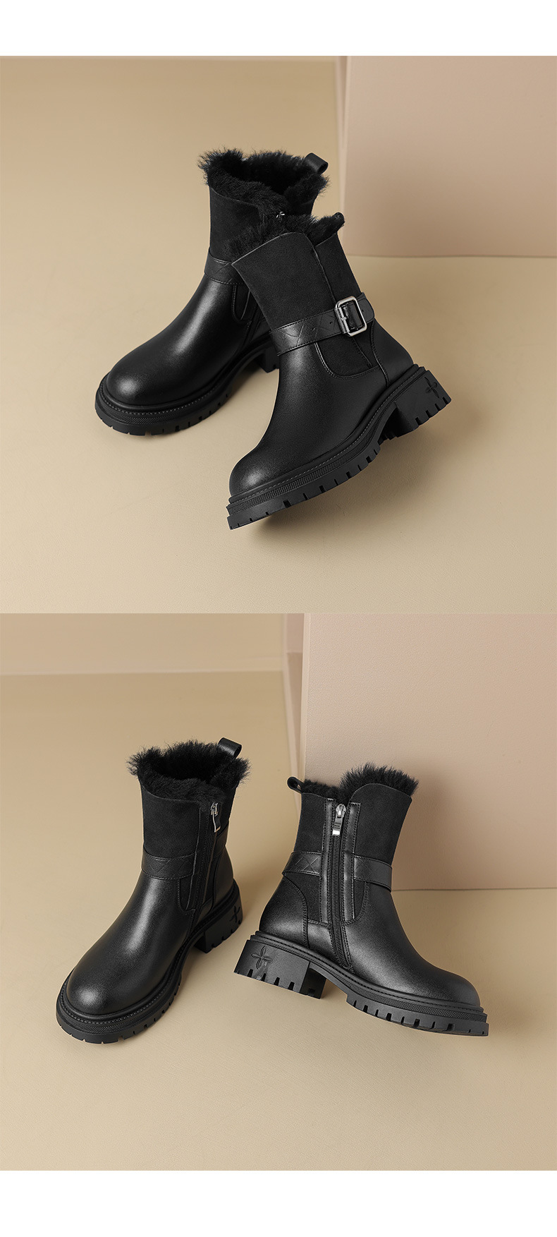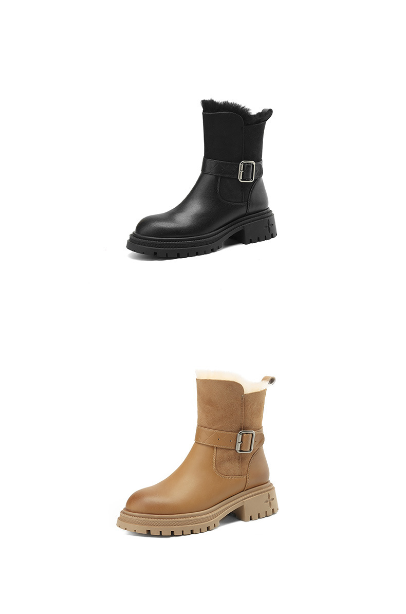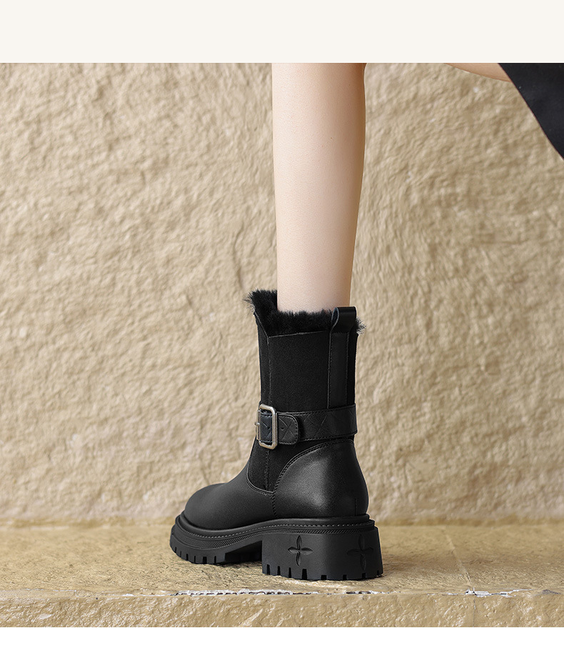 청두 수제 부츠 ~ 4cm 중간 힐 두꺼운 바닥 스노우 부츠 여성용 2024 겨울 벨트 버클 두꺼운 힐 짧은 부츠스토어 가기