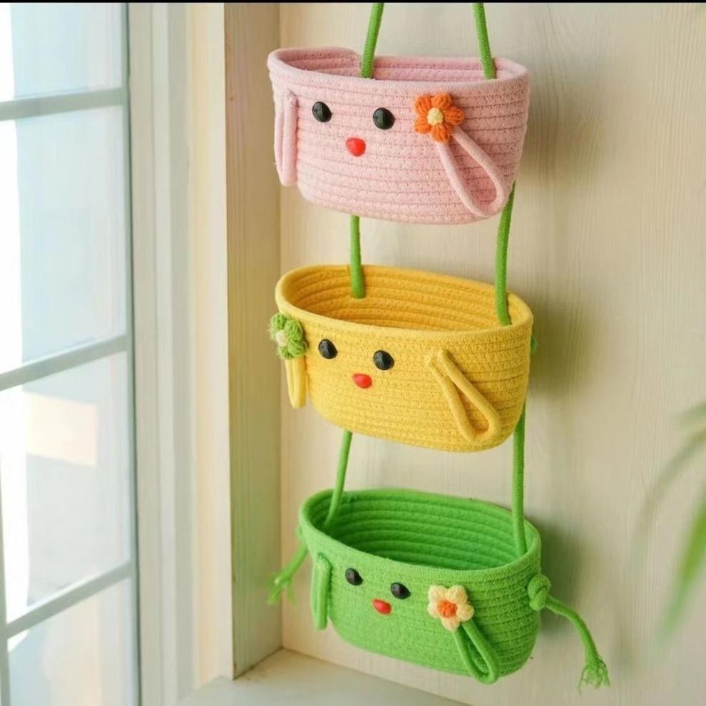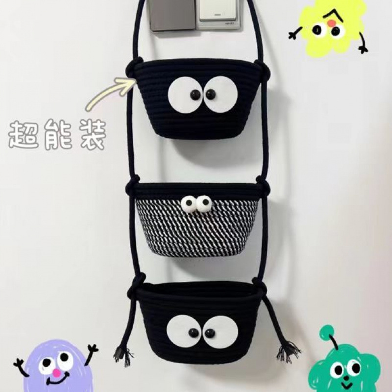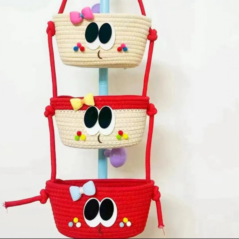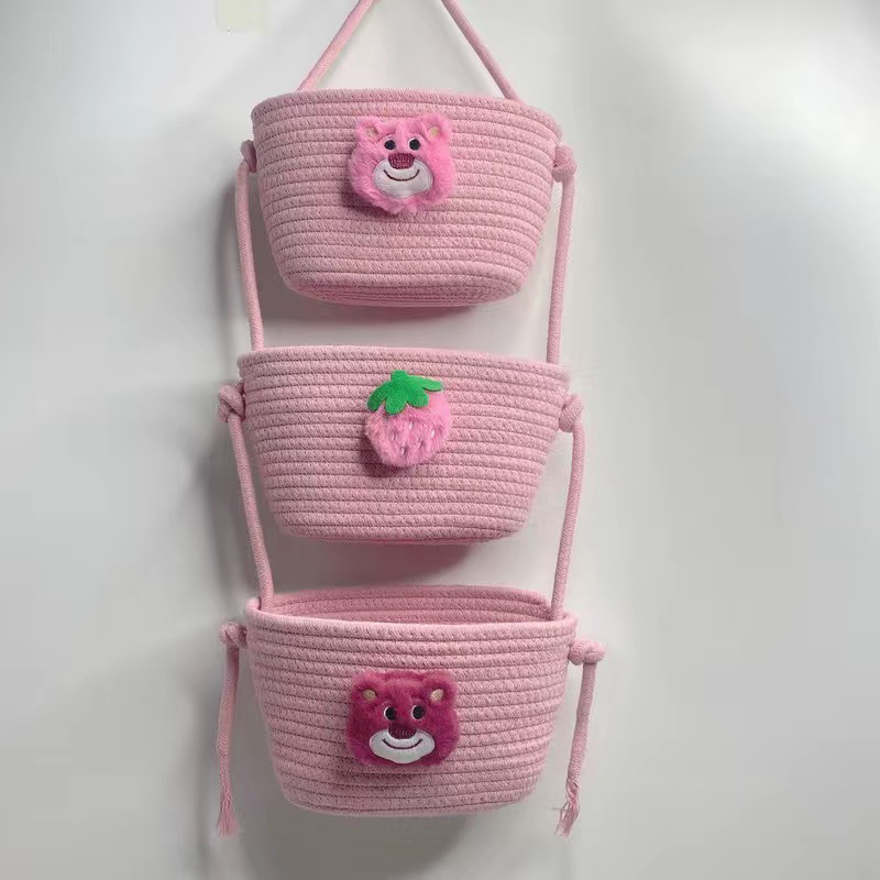 문 침실 창조적 인 교수형 바구니 만화 귀여운 면 짠 거실 복도 교수형 저장 벽 매달린 더러운 옷 바구니스토어 가기