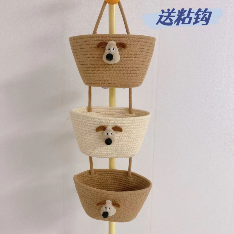 문 침실 창조적 인 교수형 바구니 만화 귀여운 면 짠 거실 복도 교수형 저장 벽 매달린 더러운 옷 바구니