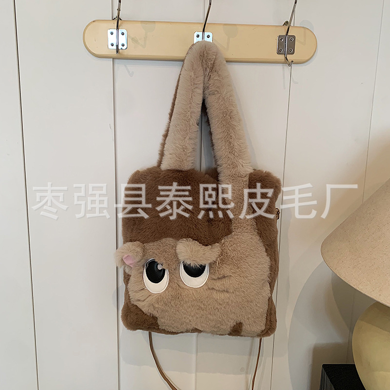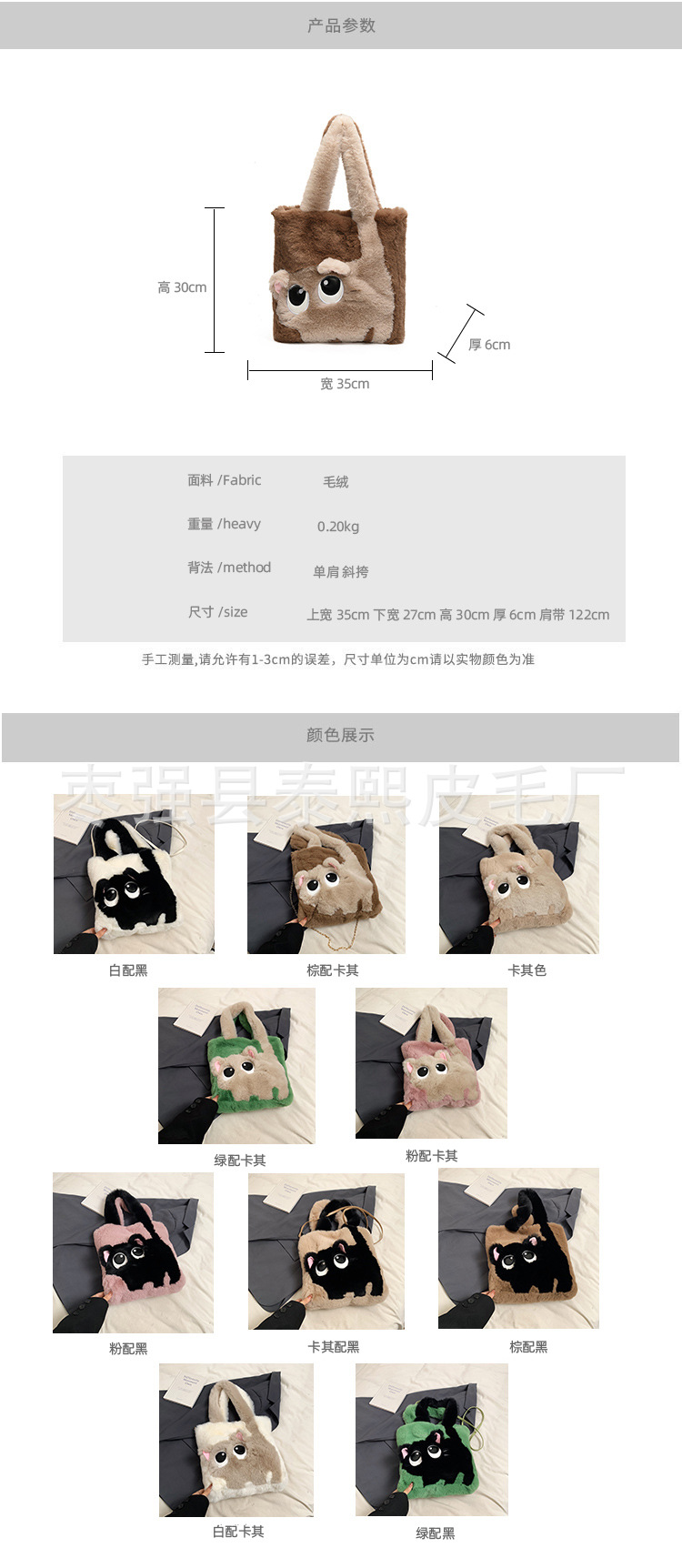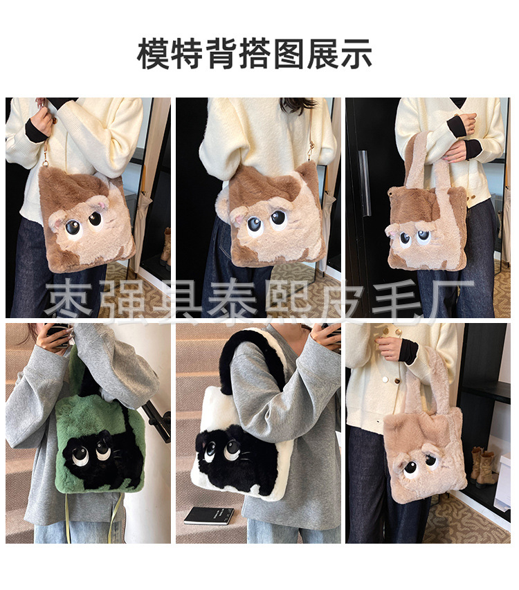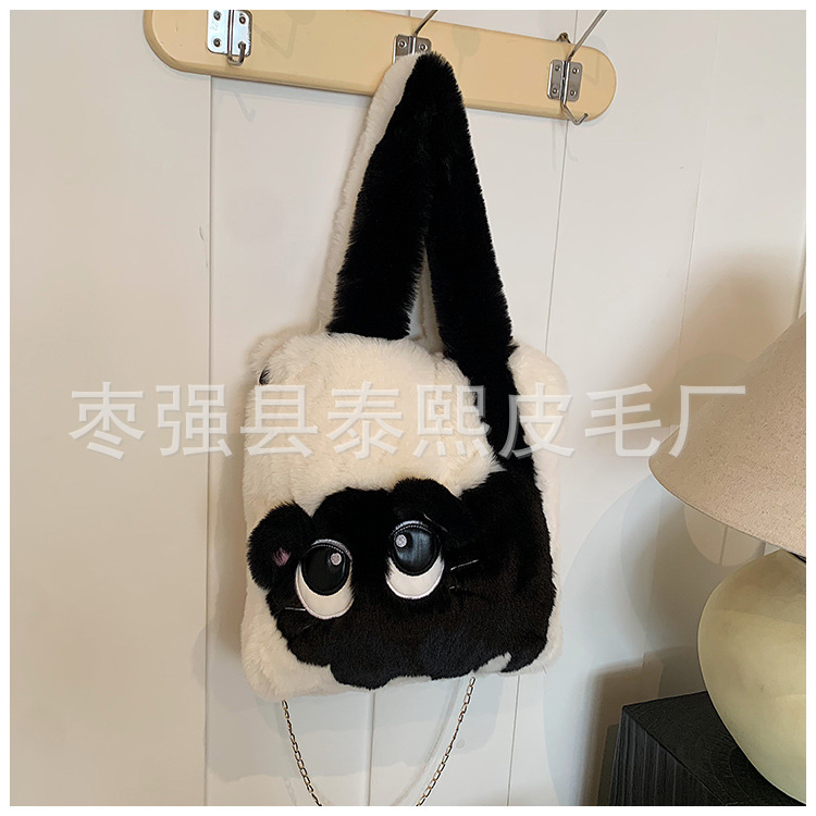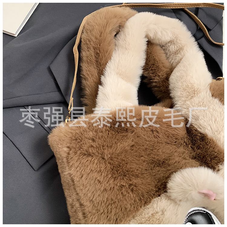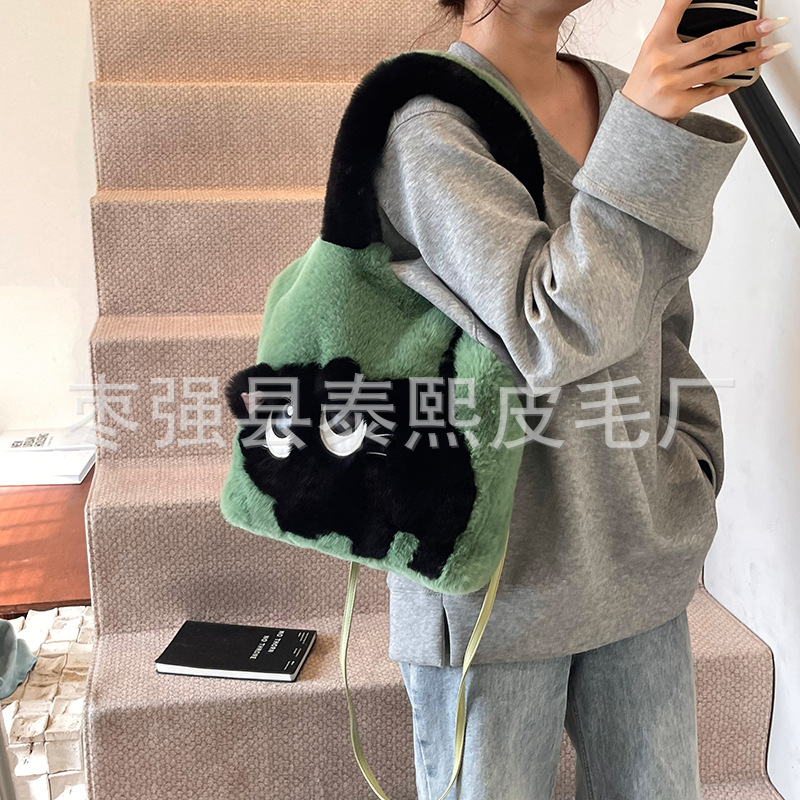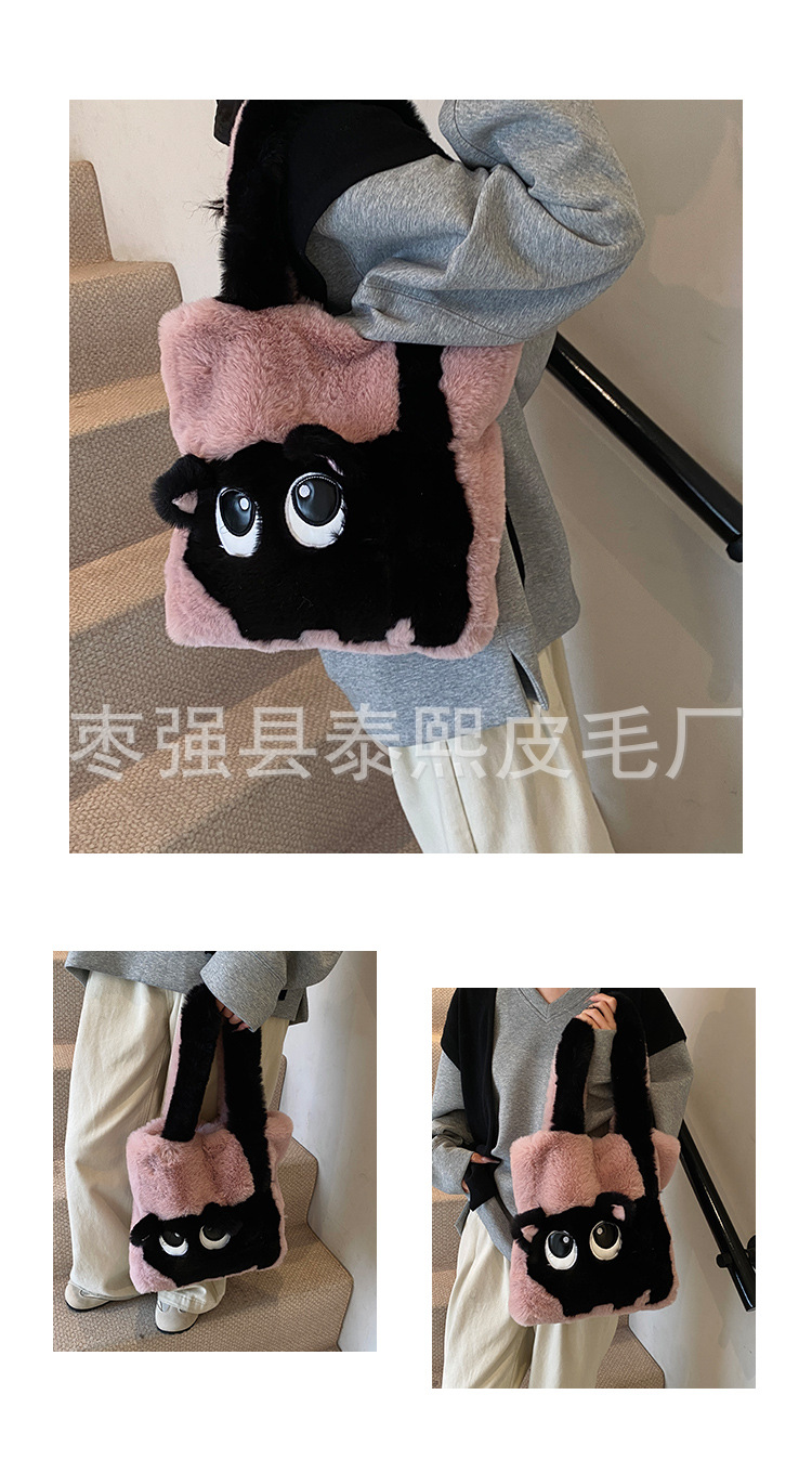 귀여운 총 2024 가을과 겨울 새로운 귀여운 새끼 고양이 핸드백 여성 가방 봉제 명암 된 어깨 가방 크로스 바디 백스토어 가기