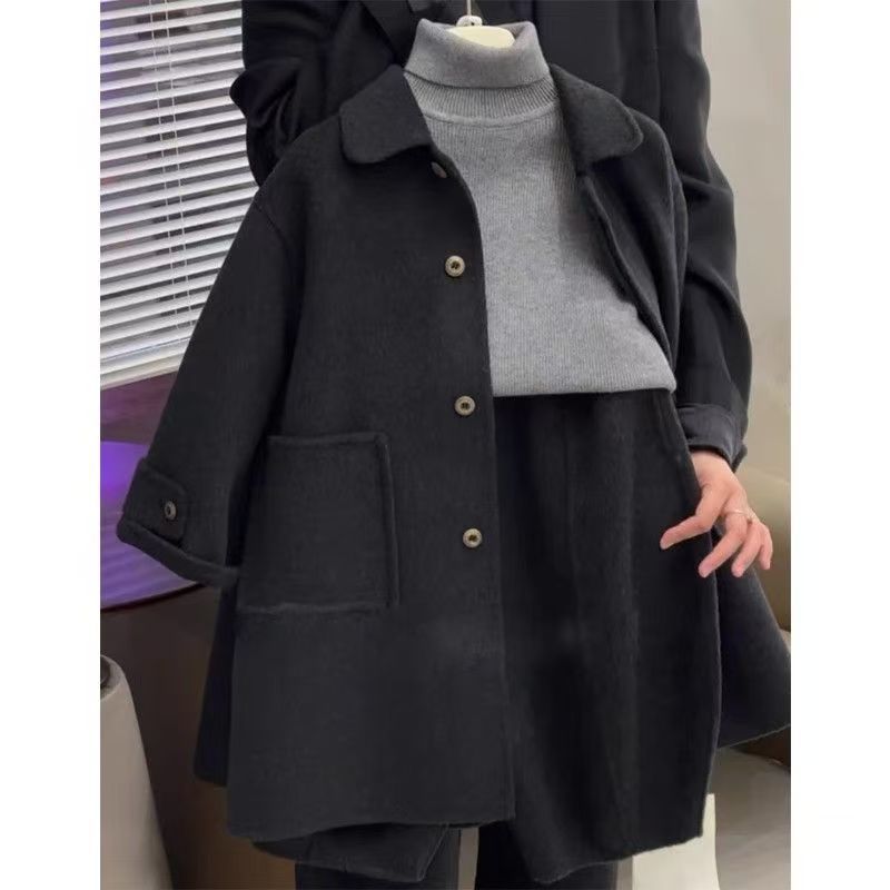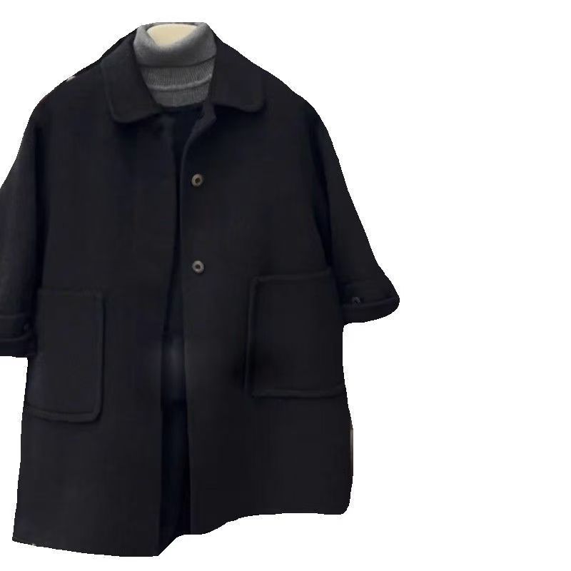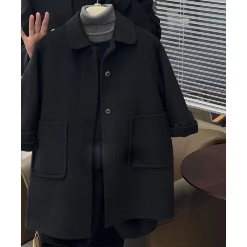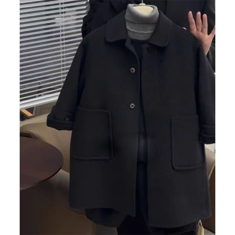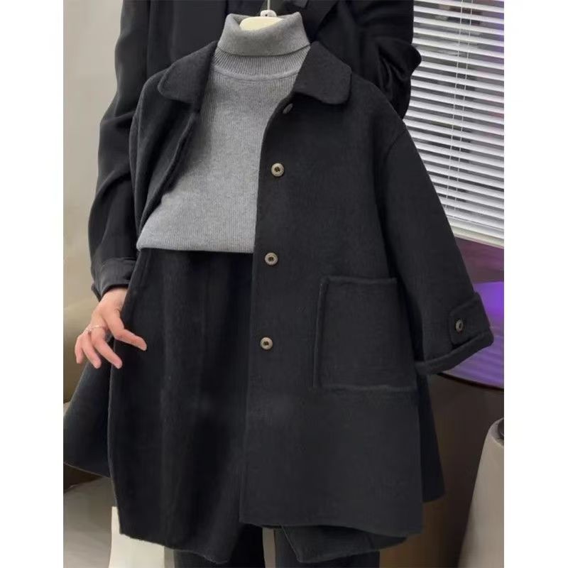 남학생과 여학생 모직 코트 2024 년 가을과 겨울 새로운 서양식 어린이 검은 모직 코트 중장기 하이 엔드 센스스토어 가기