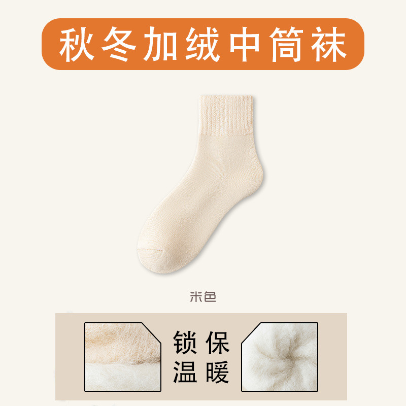 두꺼운 양말 여자의 겨울 중간 튜브 기모 홈 열 저장 따뜻한 수면 달 양말 두꺼운 여자의 겨울 스타킹스토어 가기