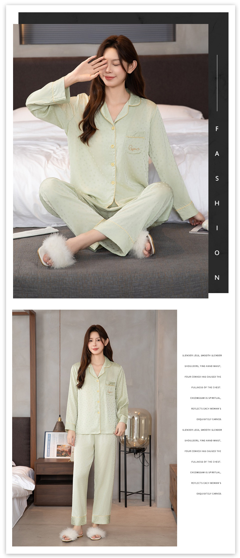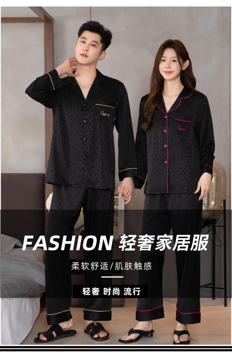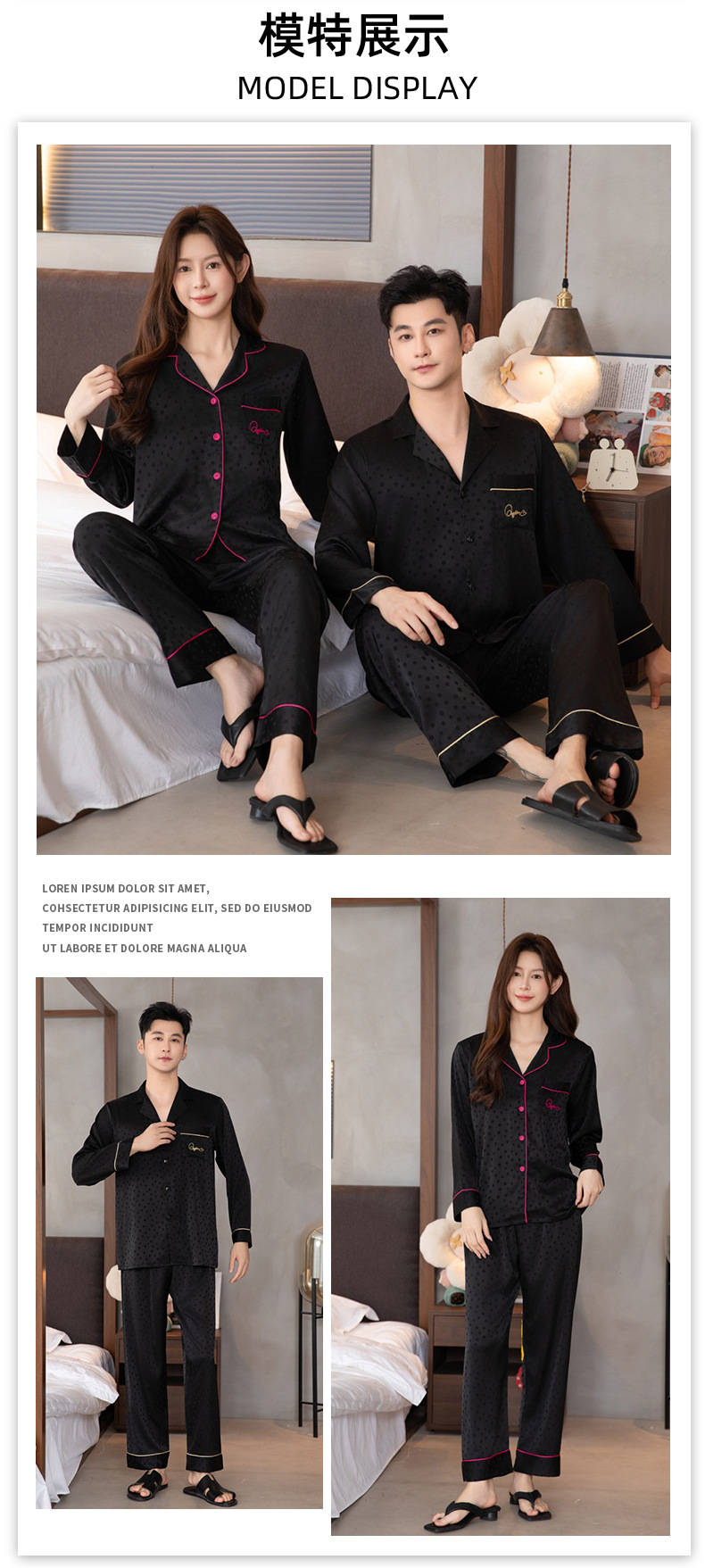 2025 커플 아이스 실크 잠옷 여성의 봄과 가을 긴 소매 플러스 사이즈 옷깃 카디건 세트 인기 라이브 프린트 홈스토어 가기