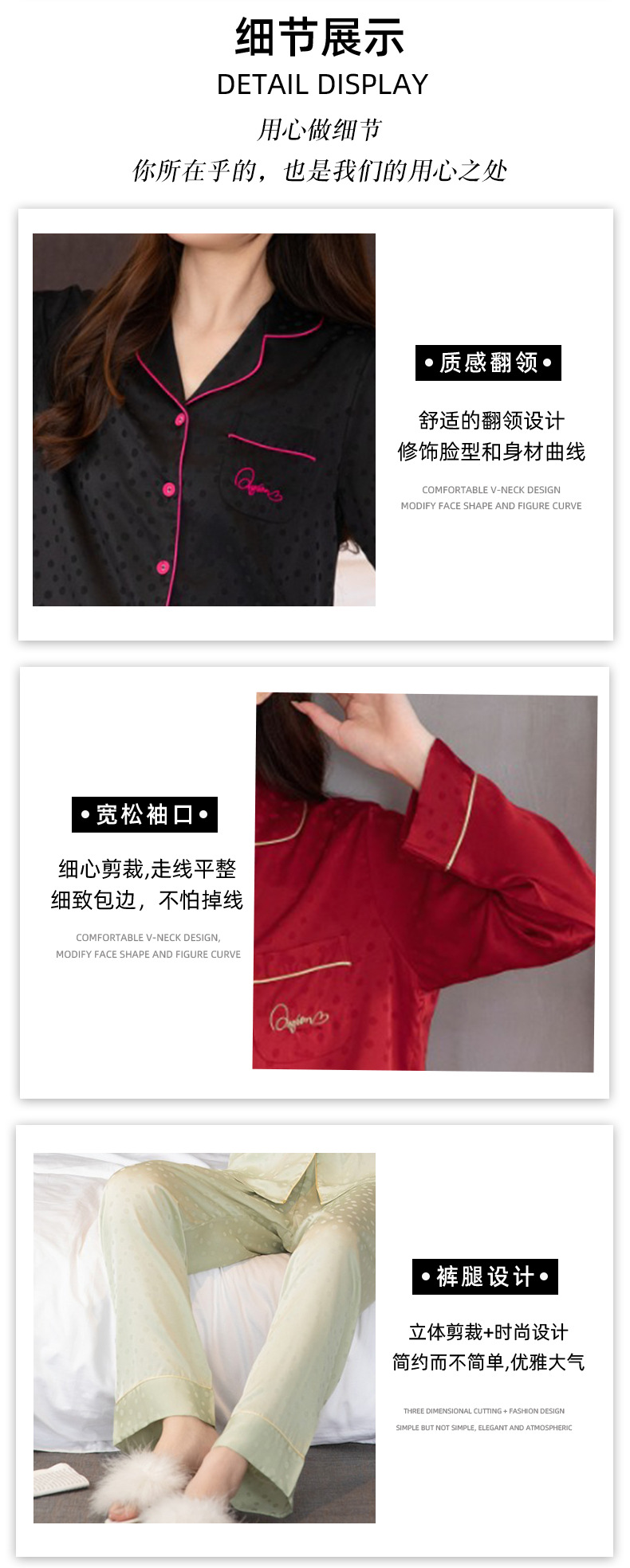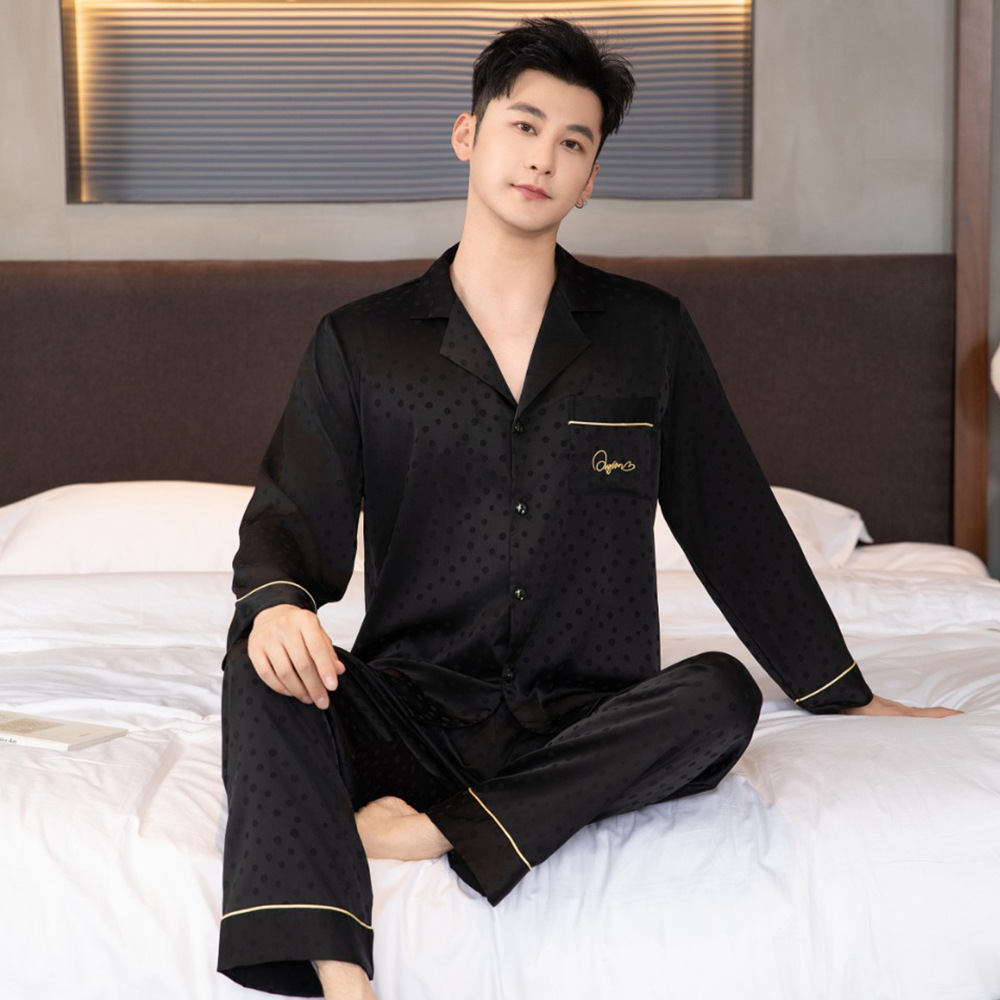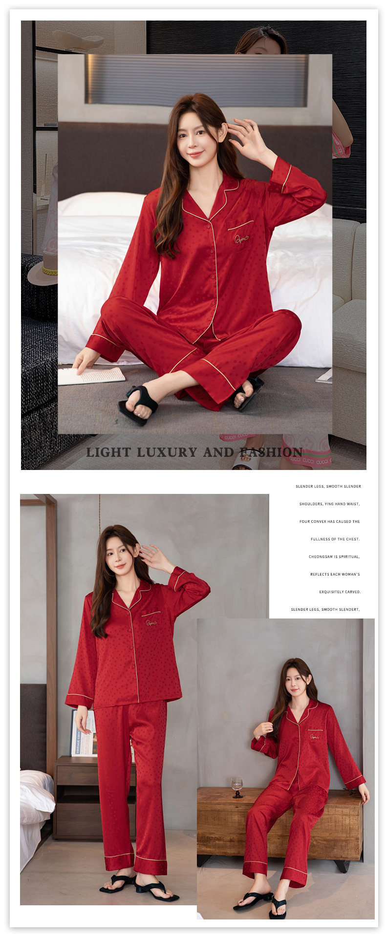 2025 커플 아이스 실크 잠옷 여성의 봄과 가을 긴 소매 플러스 사이즈 옷깃 카디건 세트 인기 라이브 프린트 홈스토어 가기