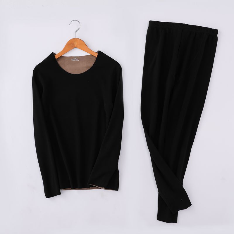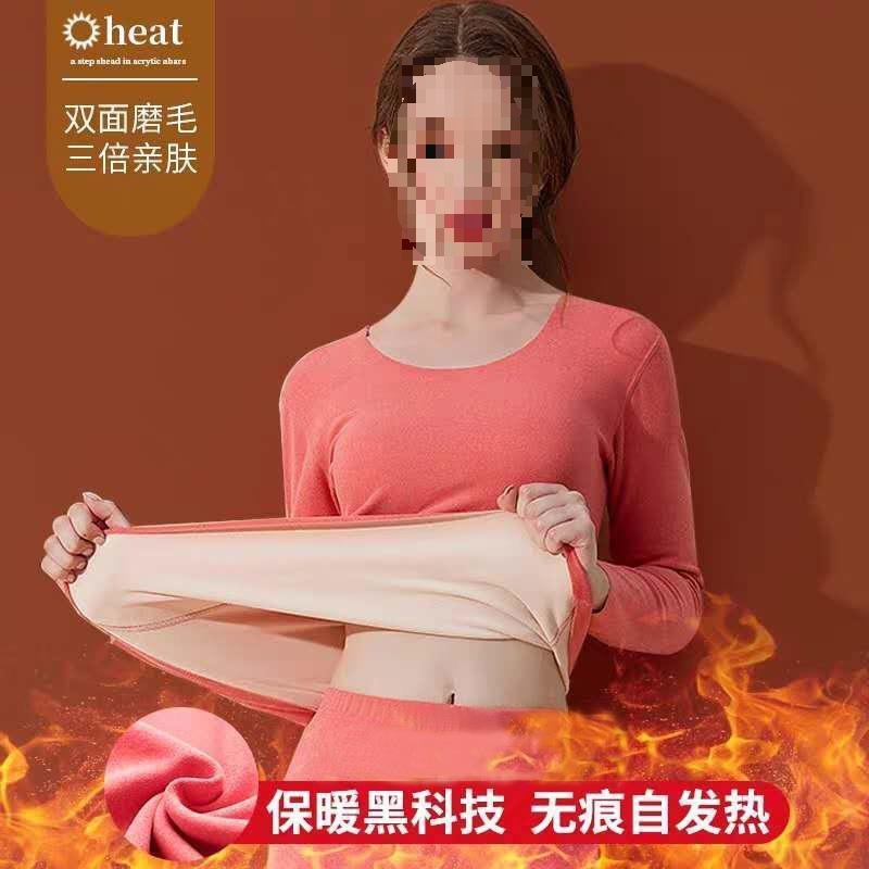 De Rong 비 상수 열 속옷 여성의 두꺼운 기모 가을 옷과 바지 세트 자체 난방 내복 이음매없는 기본 셔츠