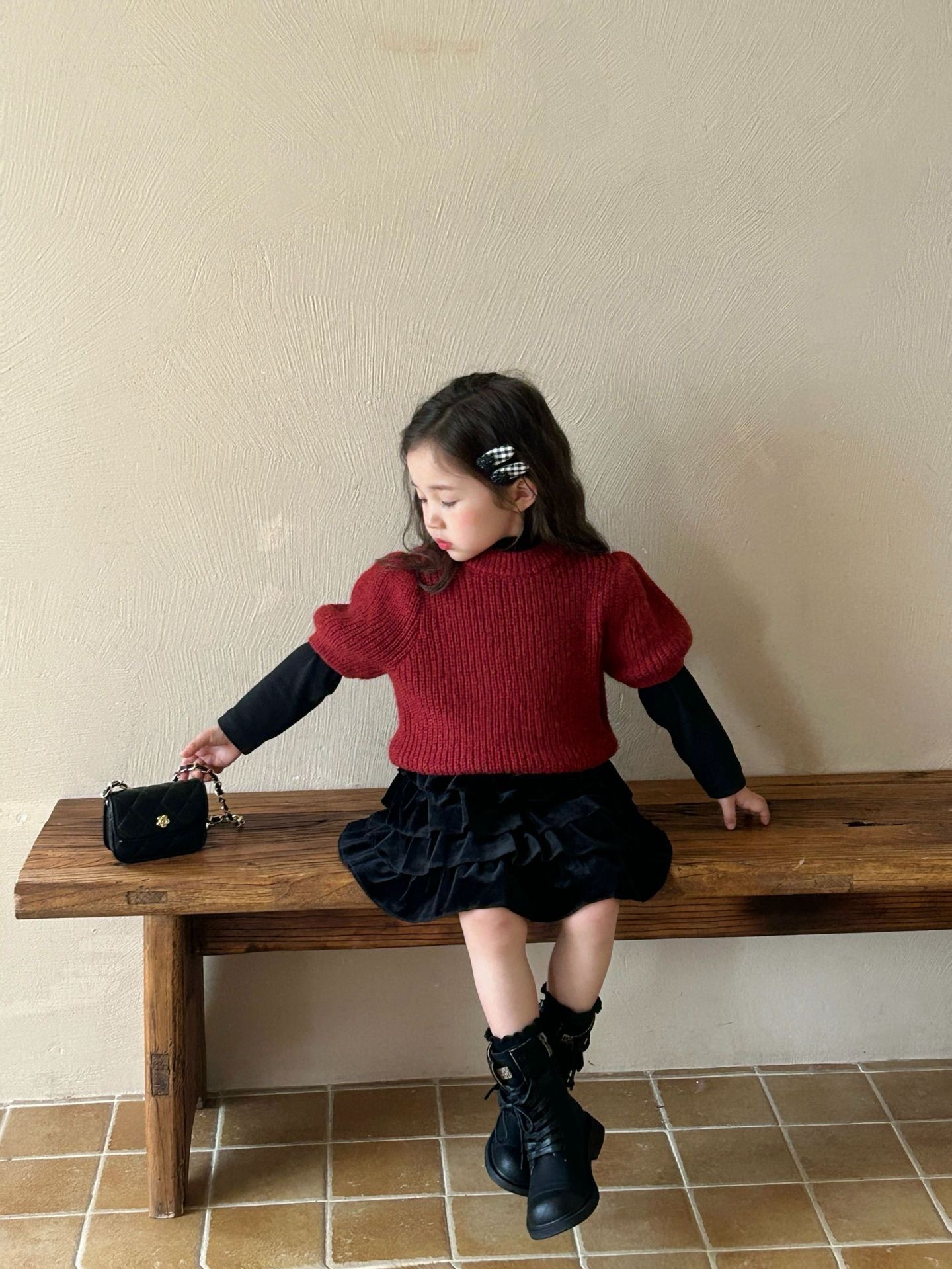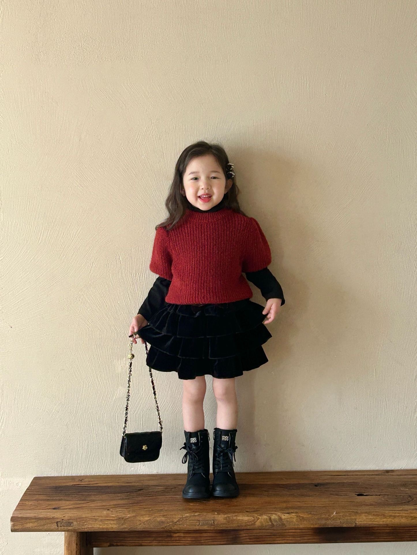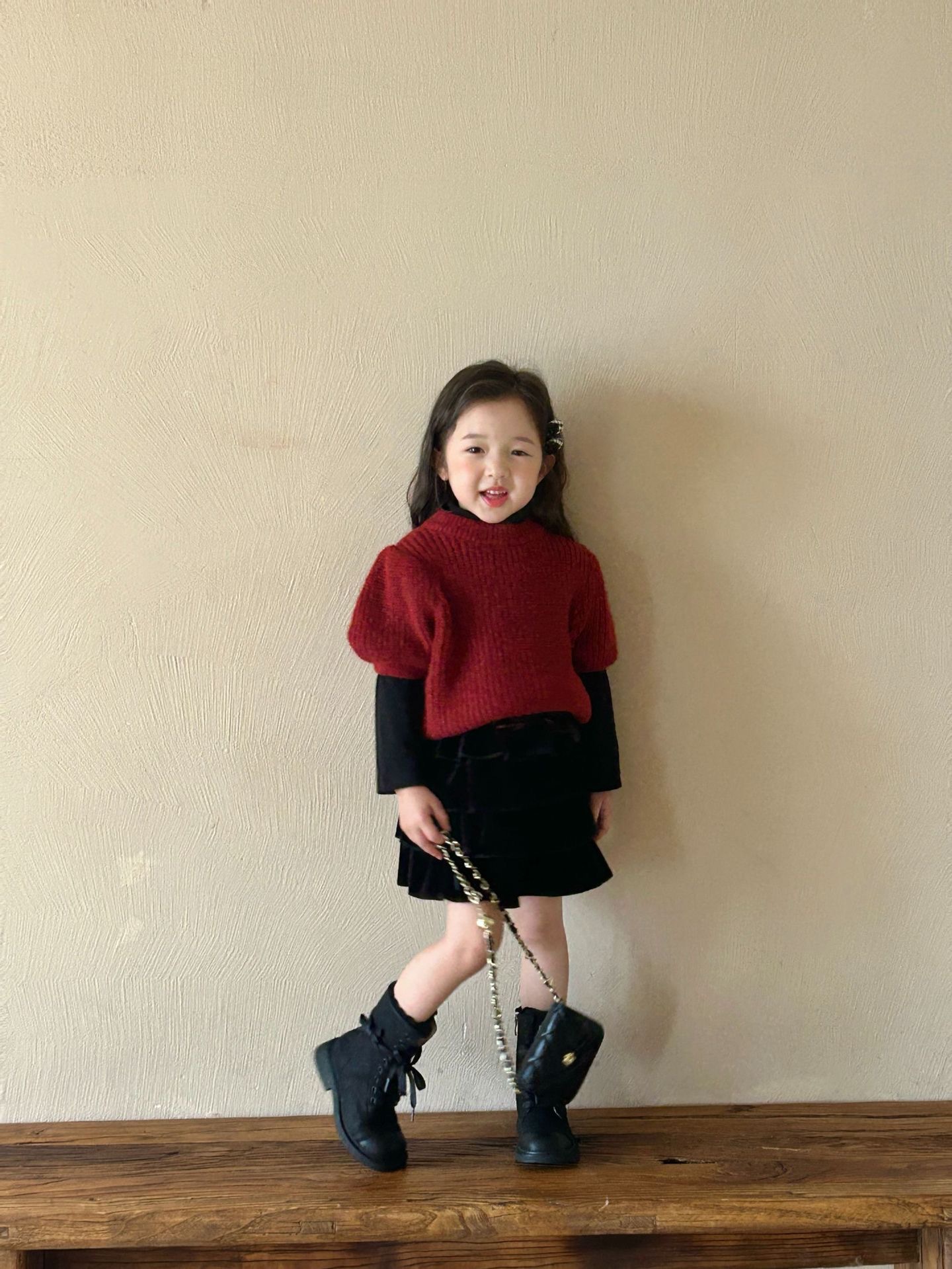 2024 년 겨울 새 아동복 한국식 아동복 소녀 신년 빨간 반팔 스웨터 서양식 퍼프 슬리브 스웨터스토어 가기