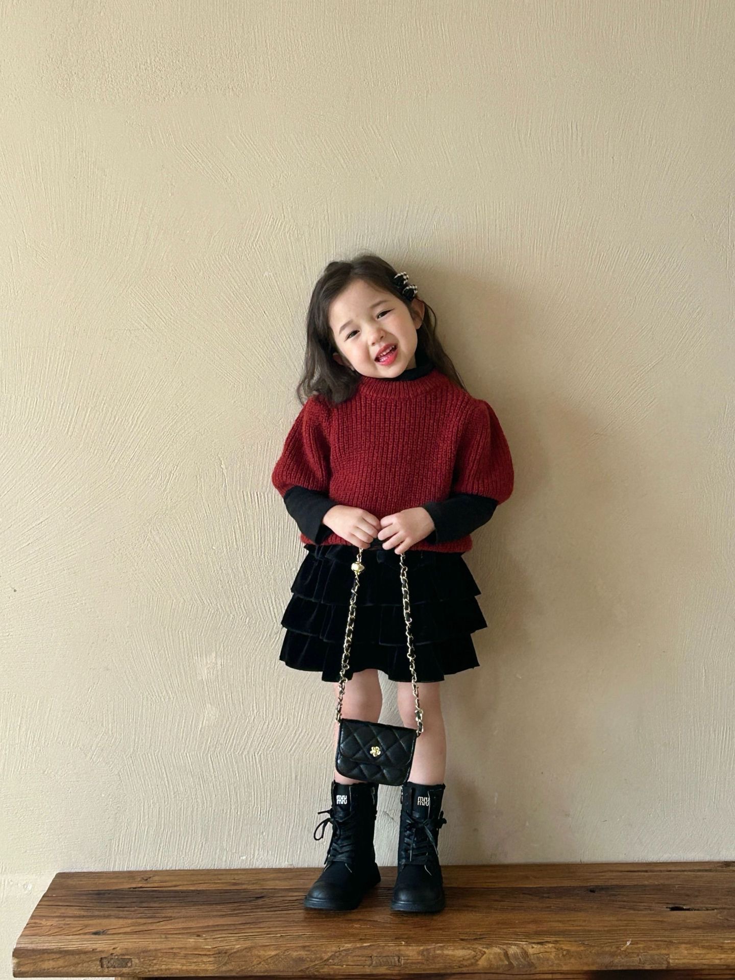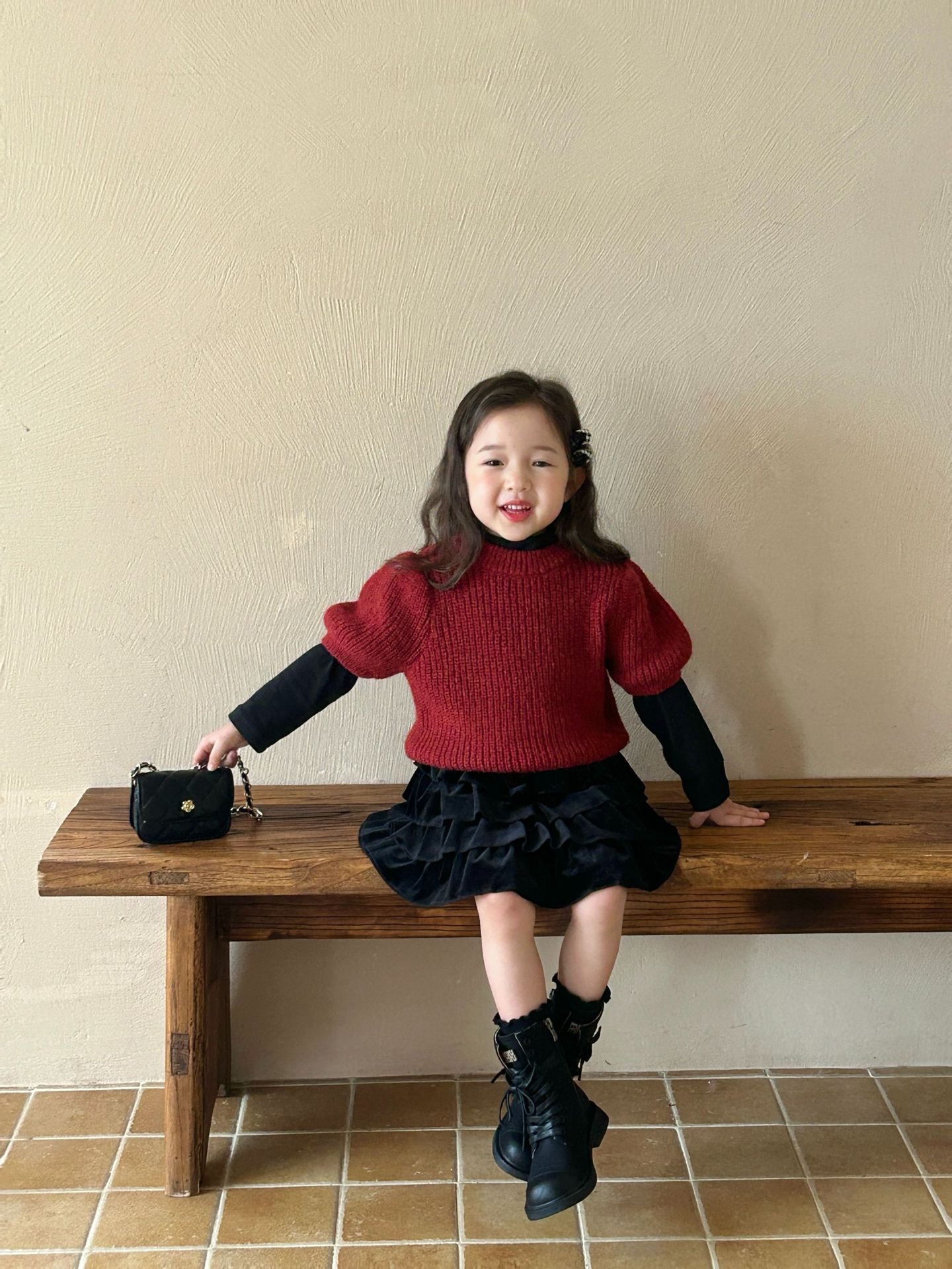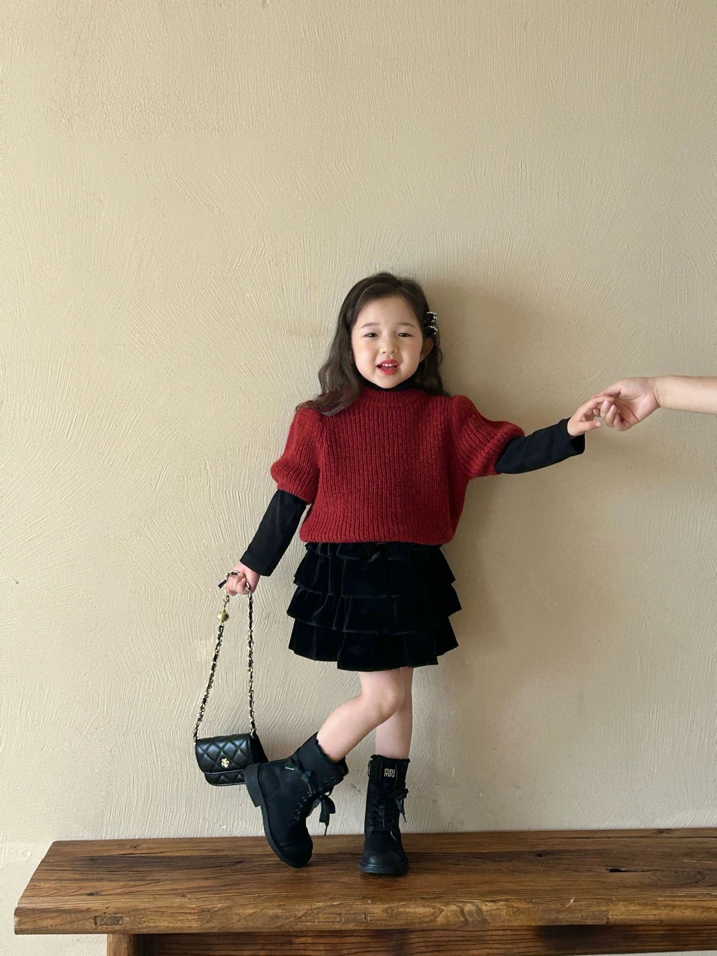 2024 년 겨울 새 아동복 한국식 아동복 소녀 신년 빨간 반팔 스웨터 서양식 퍼프 슬리브 스웨터스토어 가기