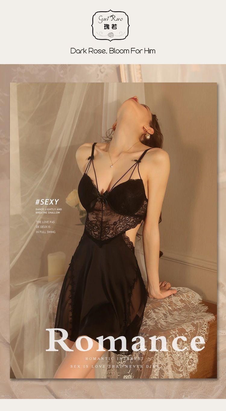 여자 섹시 매력적인 핫 소녀 나이트 드레스 레이스 할로우 백 파자마 2 피스 재킷 (가슴 패드 포함)스토어 가기