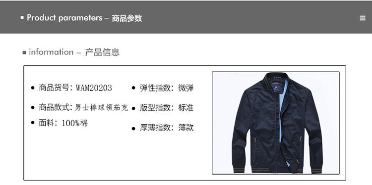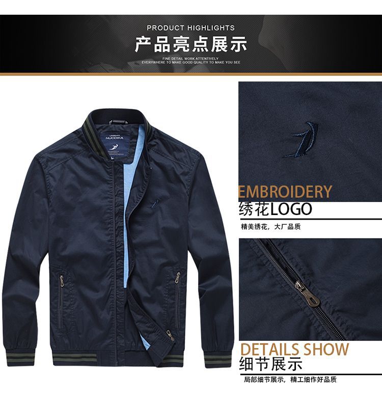 바스쉬엔잉 순면 파일럿 재킷 남성 비즈니스 고급 캐주얼 루즈핏 라지 사이즈 스탠드 칼라 야구 재킷