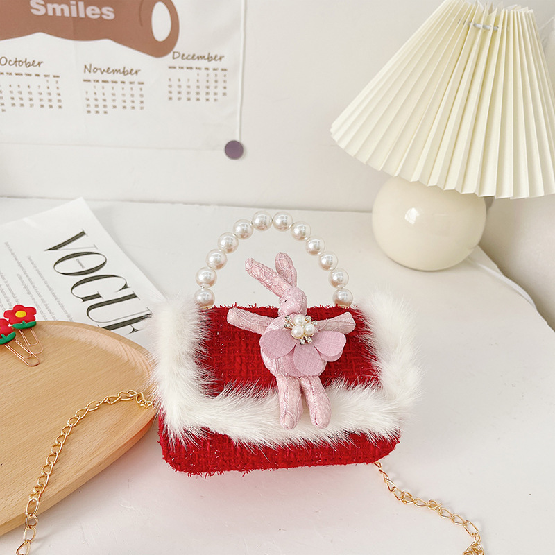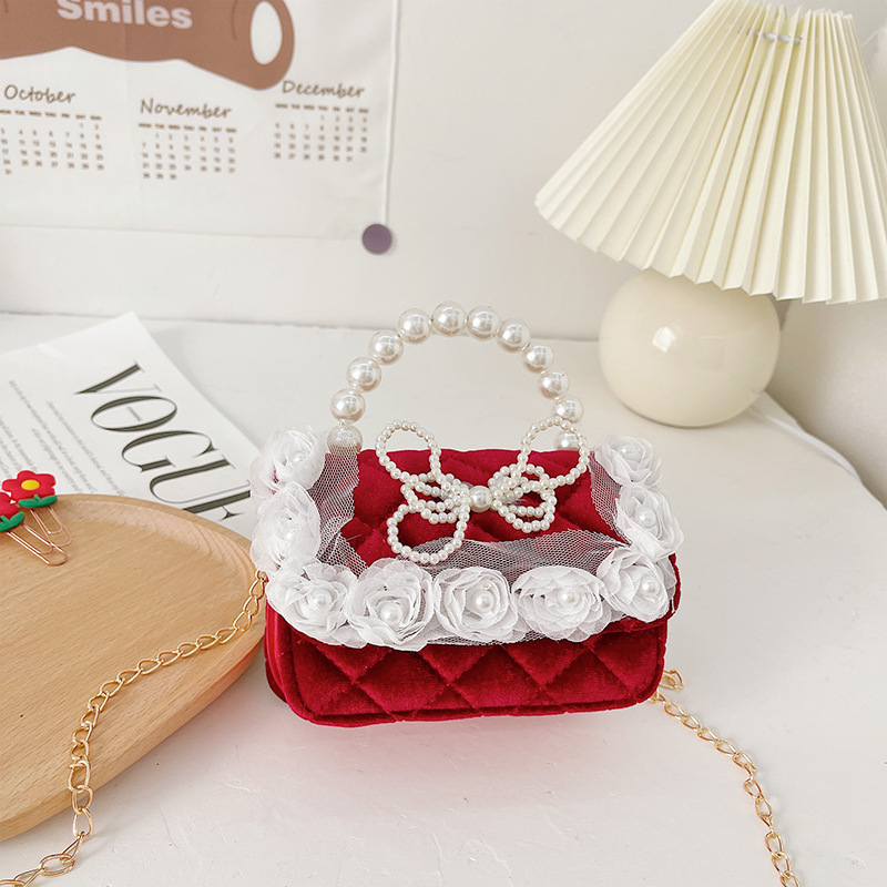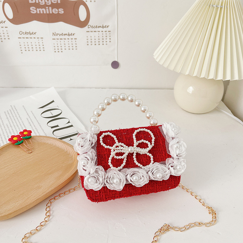 새해 어린이 가방 큰 붉은 샤넬 스타일 진주 핸드백 아기의 활 체인 가방 소녀의 동전 지갑스토어 가기