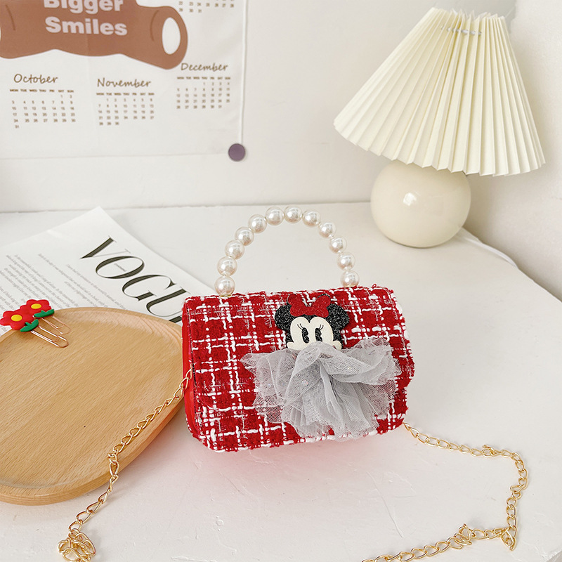 새해 어린이 가방 큰 붉은 샤넬 스타일 진주 핸드백 아기의 활 체인 가방 소녀의 동전 지갑