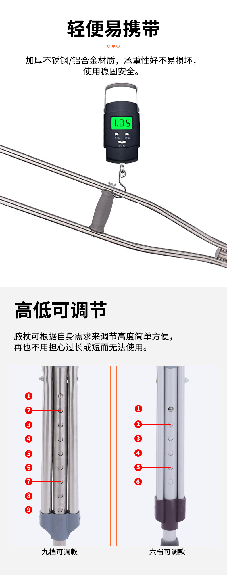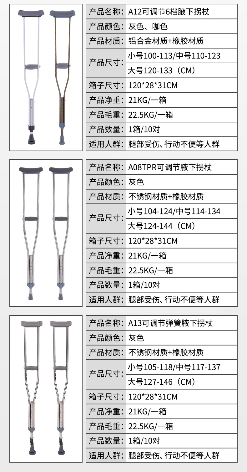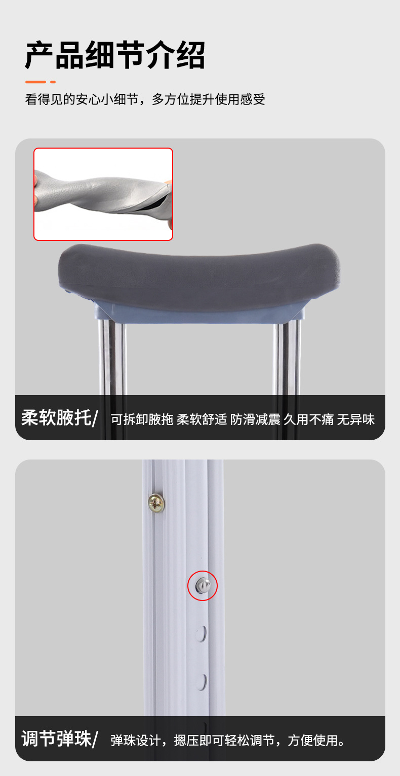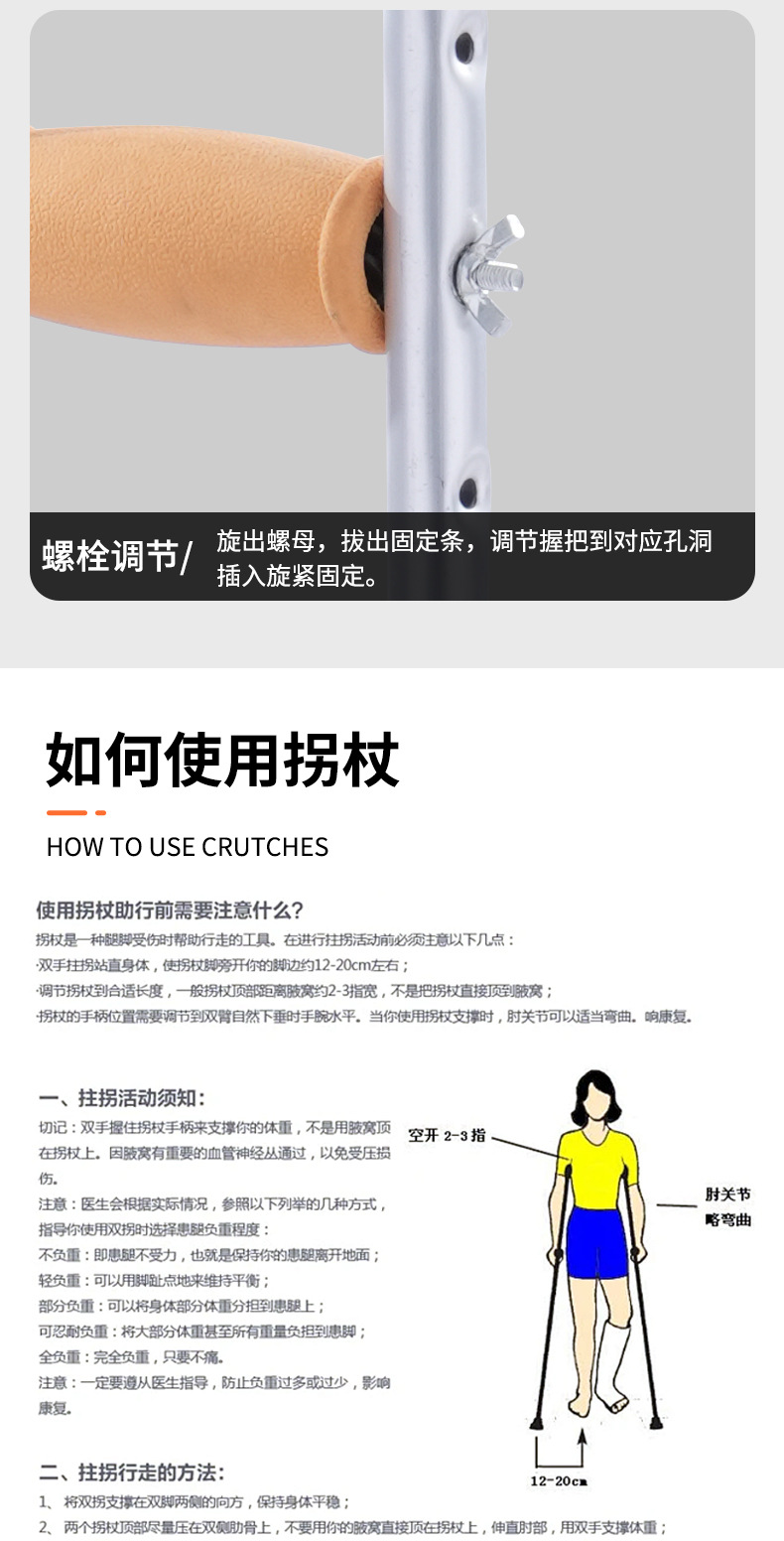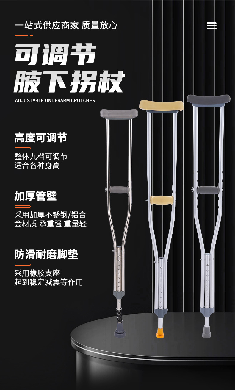 겨드랑이 지팡이, 맞춤형 골절 재활 지팡이, 미끄럼 방지 리프팅 지팡이, 장애인 및 노인 보행 보조 지팡이스토어 가기