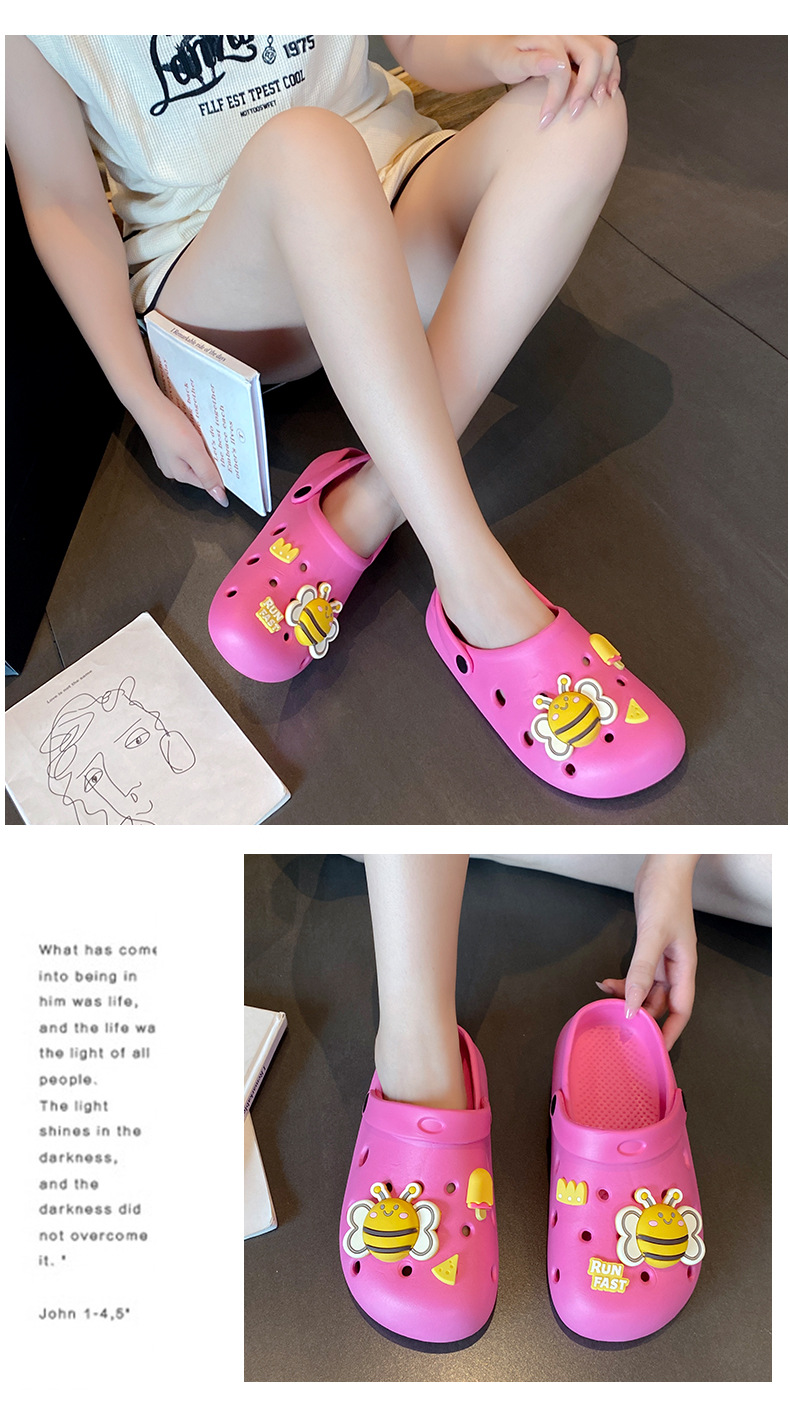 여름 유행 바오터우 샌들 및 슬리퍼 여성용 경량 미끄럼 방지 아우터 플랫 비치 슈즈 올 매치 하프 슬리퍼
