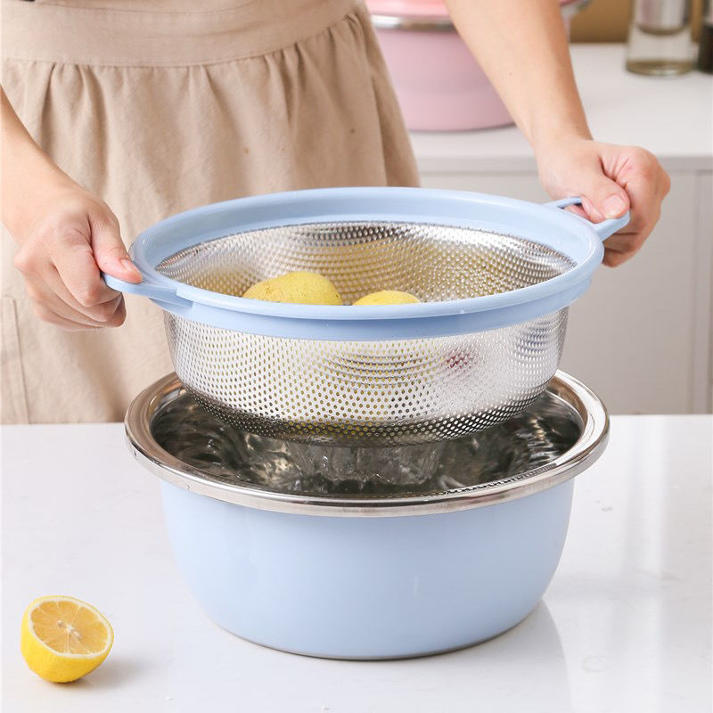 1-2 세트의 컬러 스테인레스 스틸 분지 세척 바구니 배수구 세트 쌀 체 라운드 주방 다목적 분지