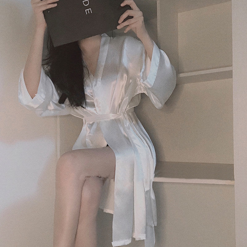 한춘치우 나이트가운 여자 아이스 실크 파자마 여자 여름 얇은 일본 화이트 섹시한 작은 여성용 목욕 가운 느슨한 홈 옷스토어 가기