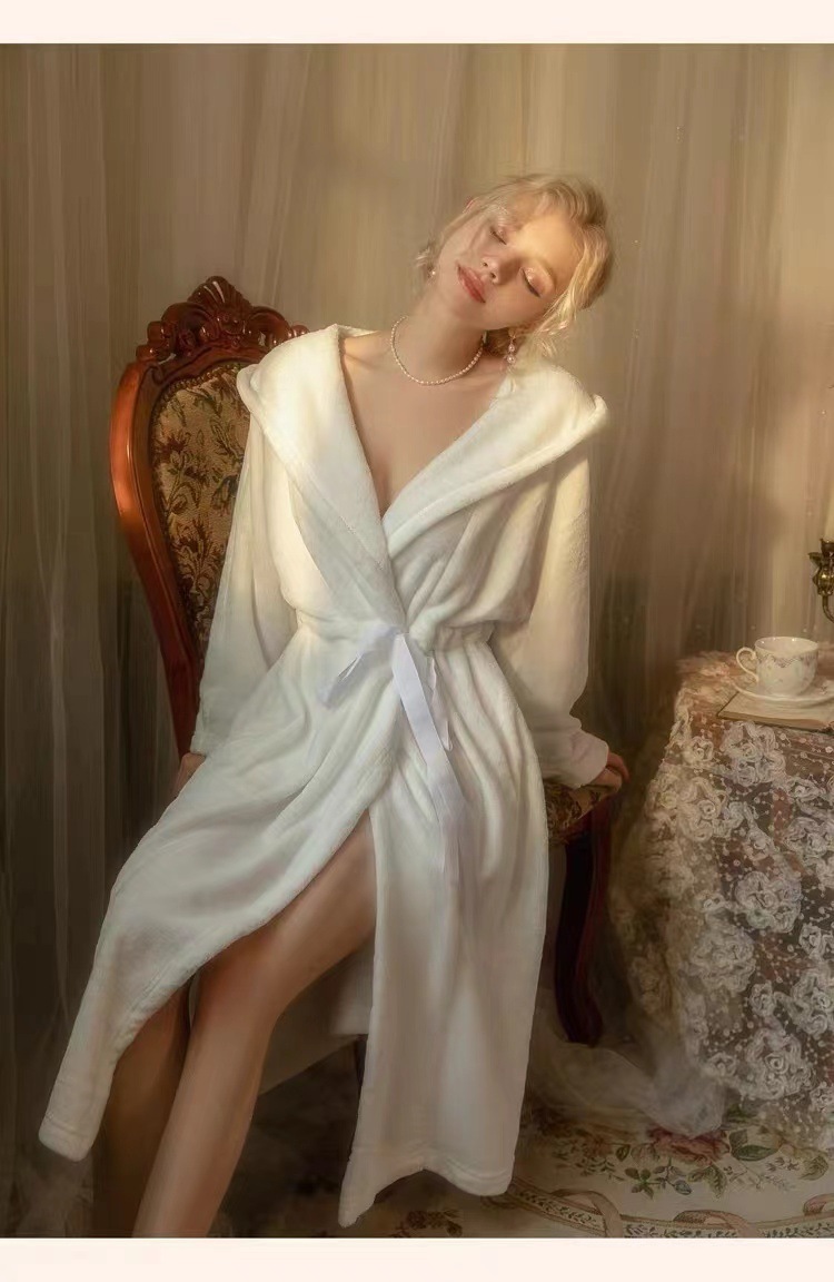 Ins 스타일 가을과 겨울 유럽과 미국의 단색 인터넷 연예인 산호 양털 섹시한 숙녀 잠옷 목욕 타월 목욕 가운 목욕 가운
