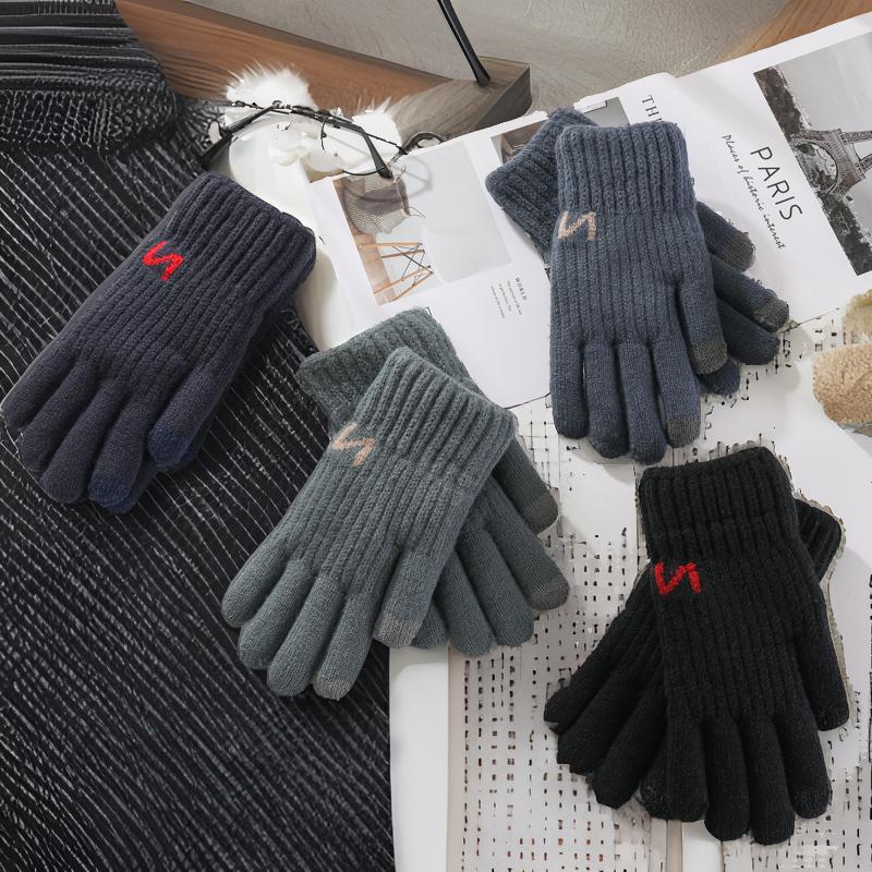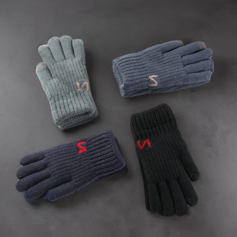 가을과 겨울 남녀 커플 한국 스타일 두꺼운 단색 니트 양모 따뜻한 기모 터치 스크린 운전 장갑