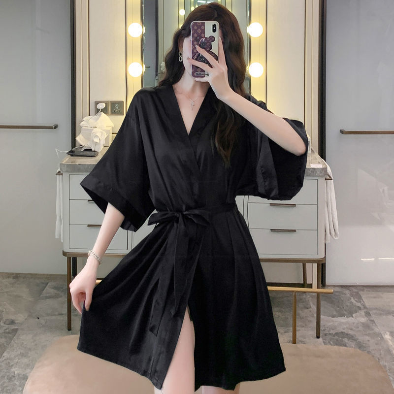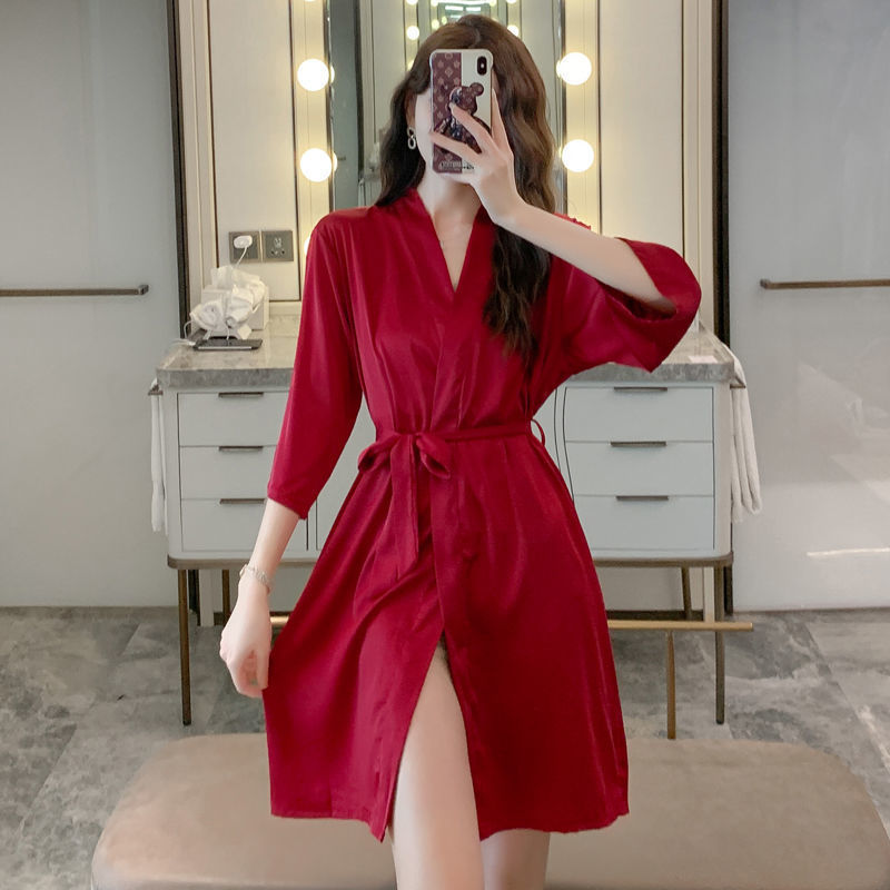 섹시한 아이스 실크 잠옷 여성 신부 들러리 웨딩 모닝 가운 봄과 여름 얇은 목욕 가운 여성 홈 옷스토어 가기