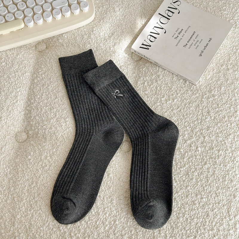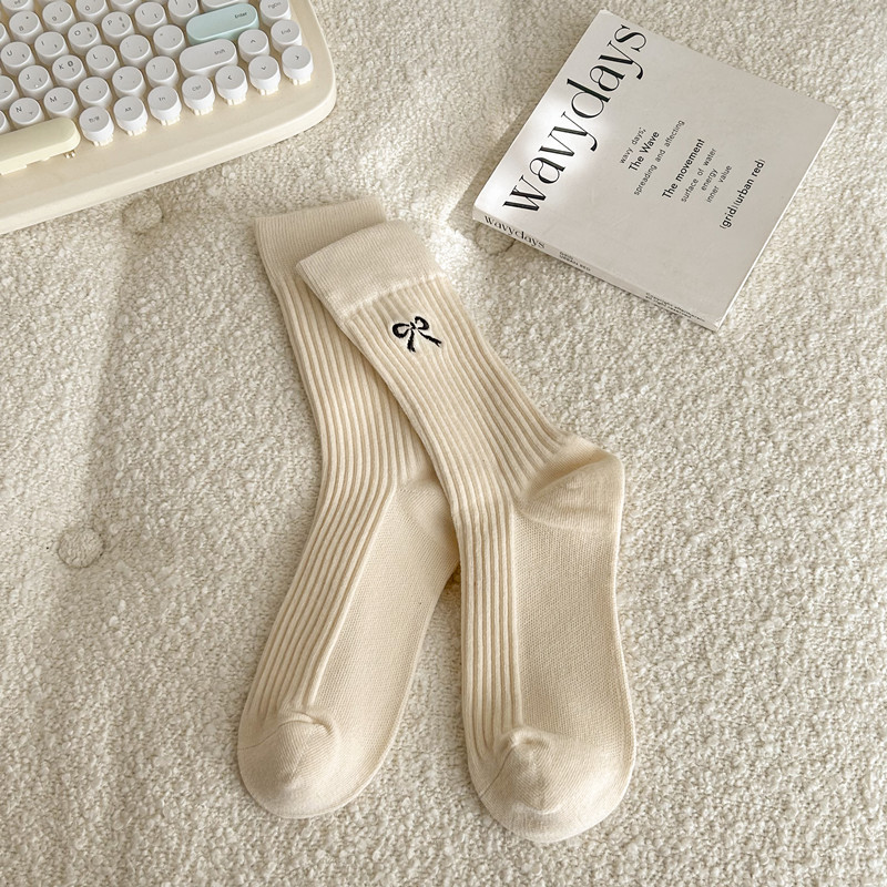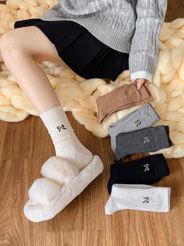 양말 여성용 스택 양말 가을과 겨울 자수 달콤한 올매치 한국식 일본식 인터넷 기념 퓨어 코튼 미드 튜브 양말