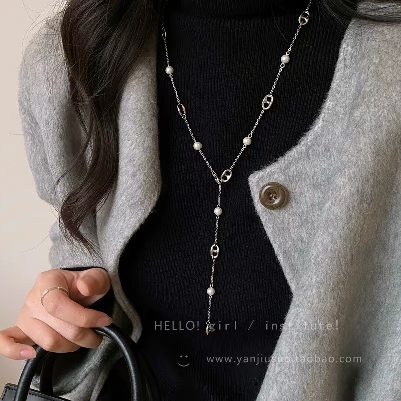 여성을위한 돼지 코 진주 목걸이 2024 새로운 가을, 겨울 디자인 긴 스웨터 체인 콜드 스타일 라이트 럭셔리 틈새 액세서리스토어 가기