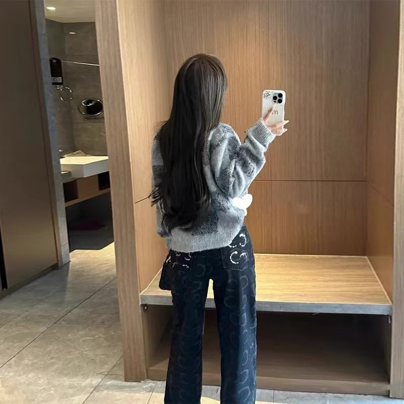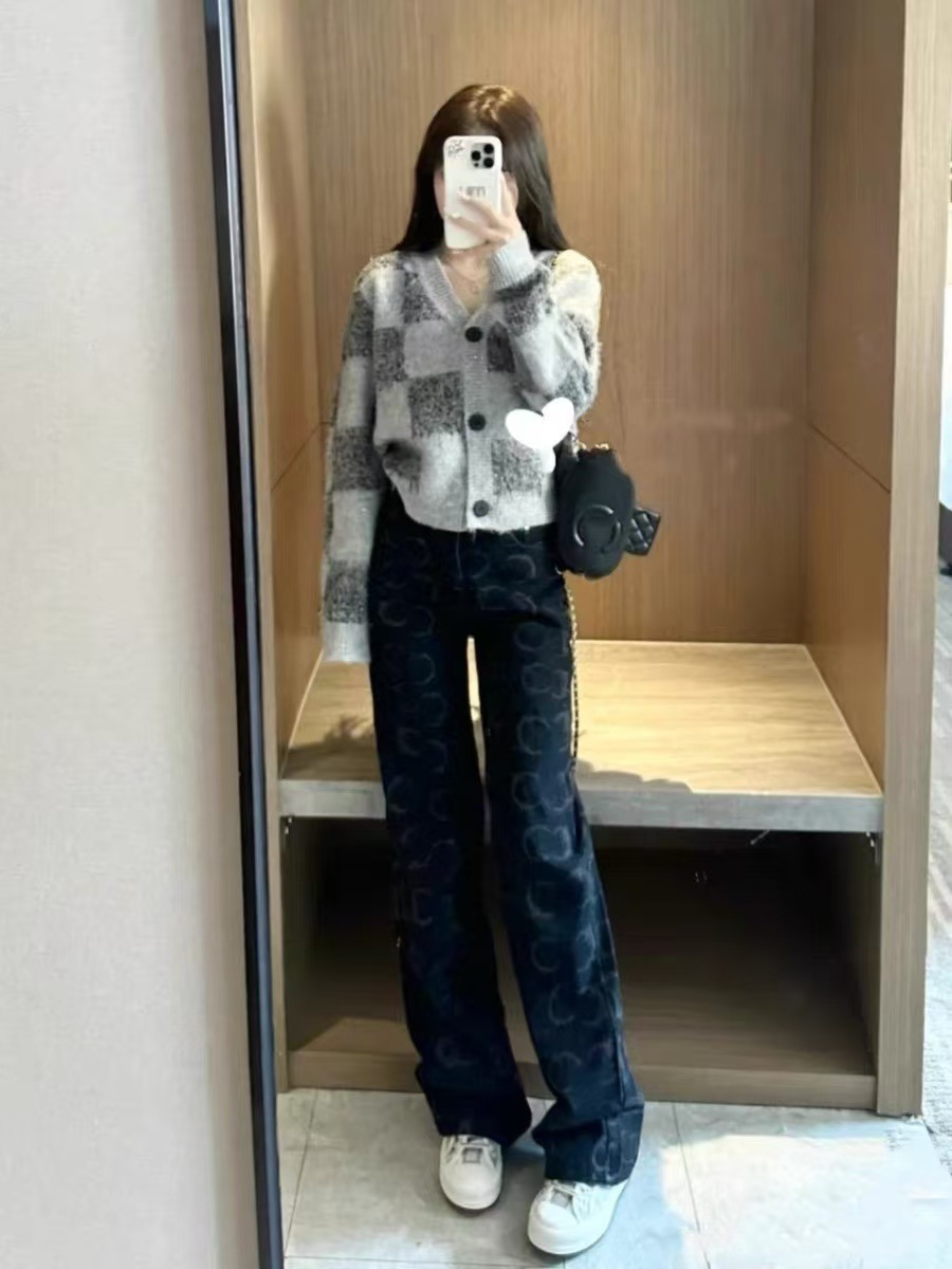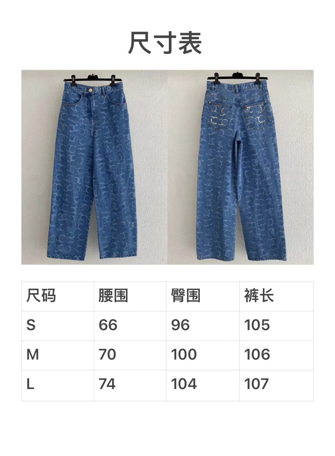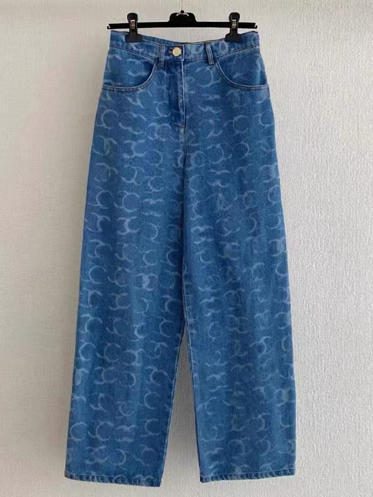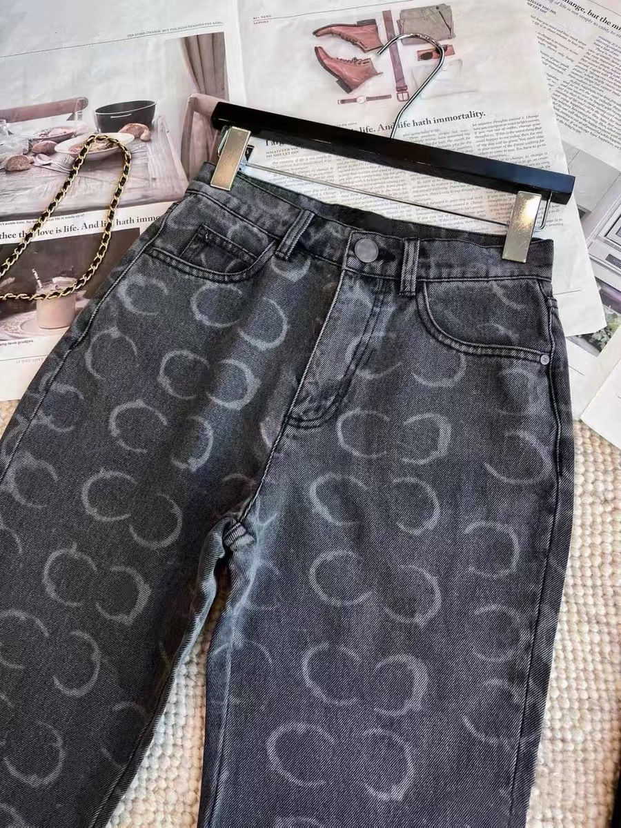 Nanyou 하이 엔드 여성 의류 2024 새로운 유럽 CH 작은 향기로운 스타일 로고 스팽글 높은 허리 스트레이트 다리 넓은 다리 청바지 여성스토어 가기