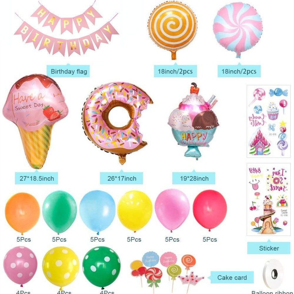 장식 캔디 도너츠 아이스크림 호일 풍선 롤리팝 파티