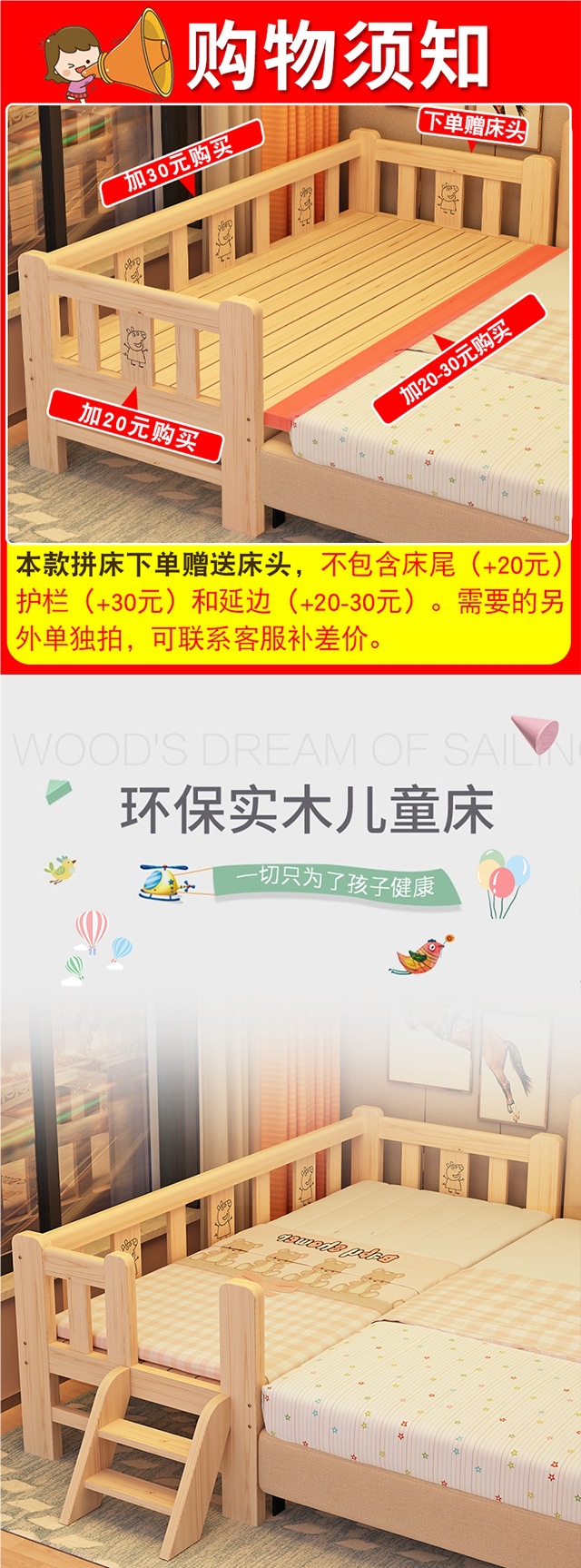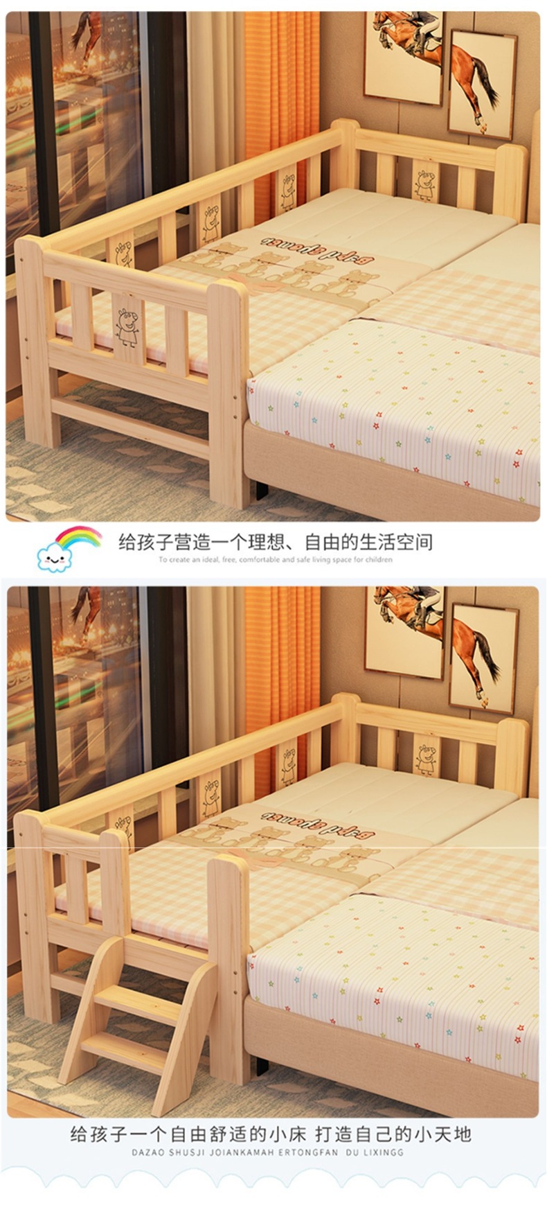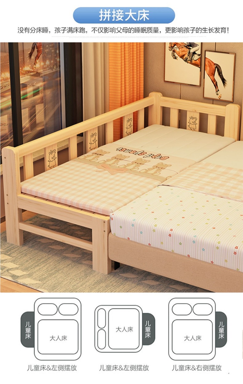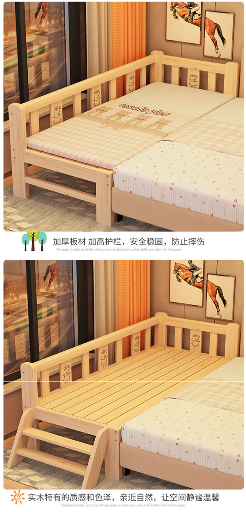어린이 단단한 나무 접합 침대 아기 침대 옆 넓어진 침대 침대 접합 침대 보호대 접합 큰 침대를 갖춘 추가 침대