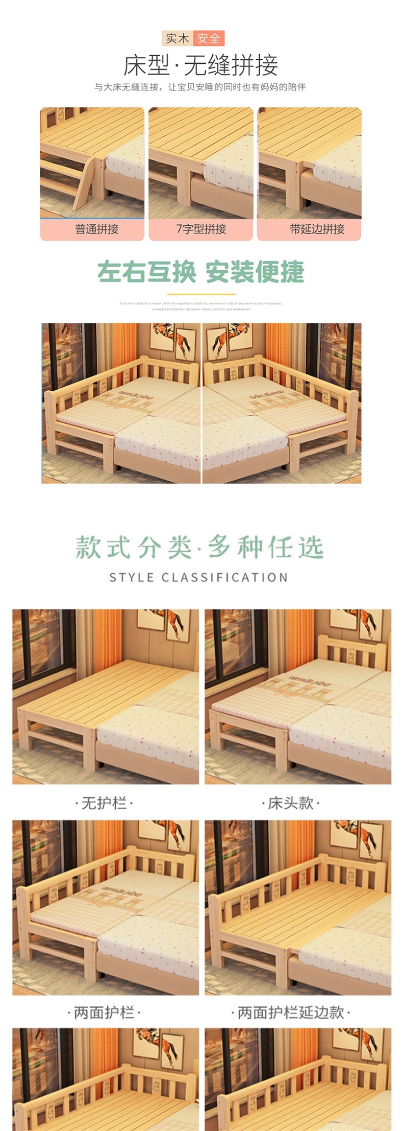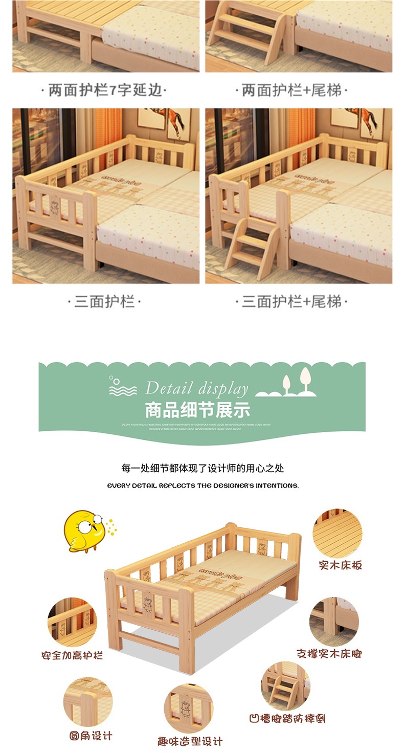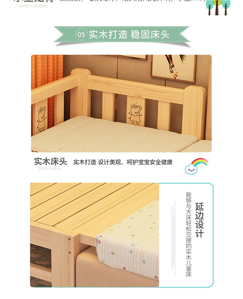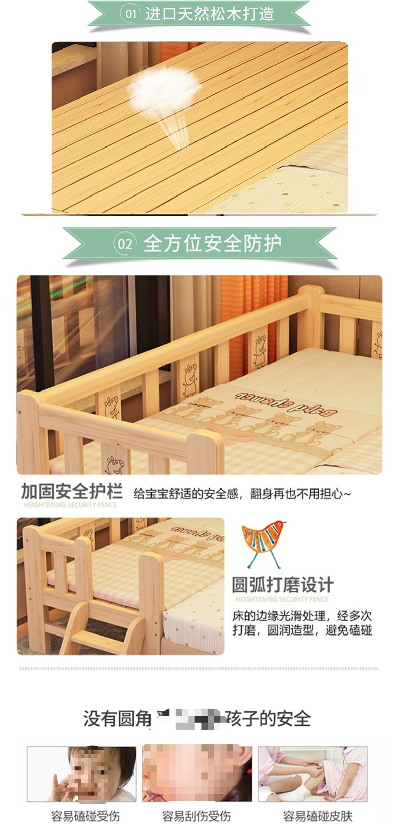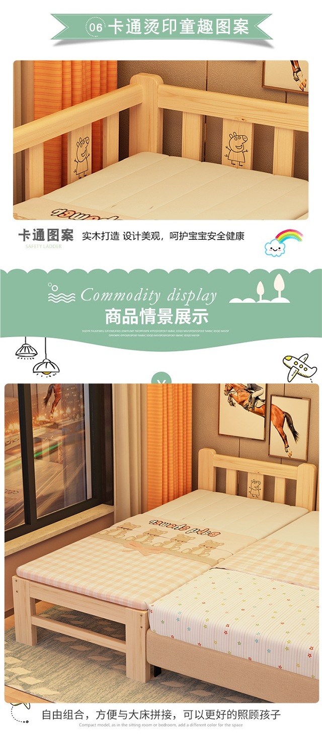 어린이 단단한 나무 접합 침대 아기 침대 옆 넓어진 침대 침대 접합 침대 보호대 접합 큰 침대를 갖춘 추가 침대
