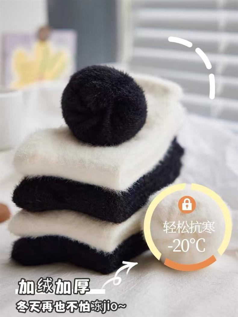가을과 겨울 올 매치 양말 여자 밍크 벨벳 미드 튜브 양말 기모 두꺼운 모피 화이트 달 양말 따뜻한 모피 양말