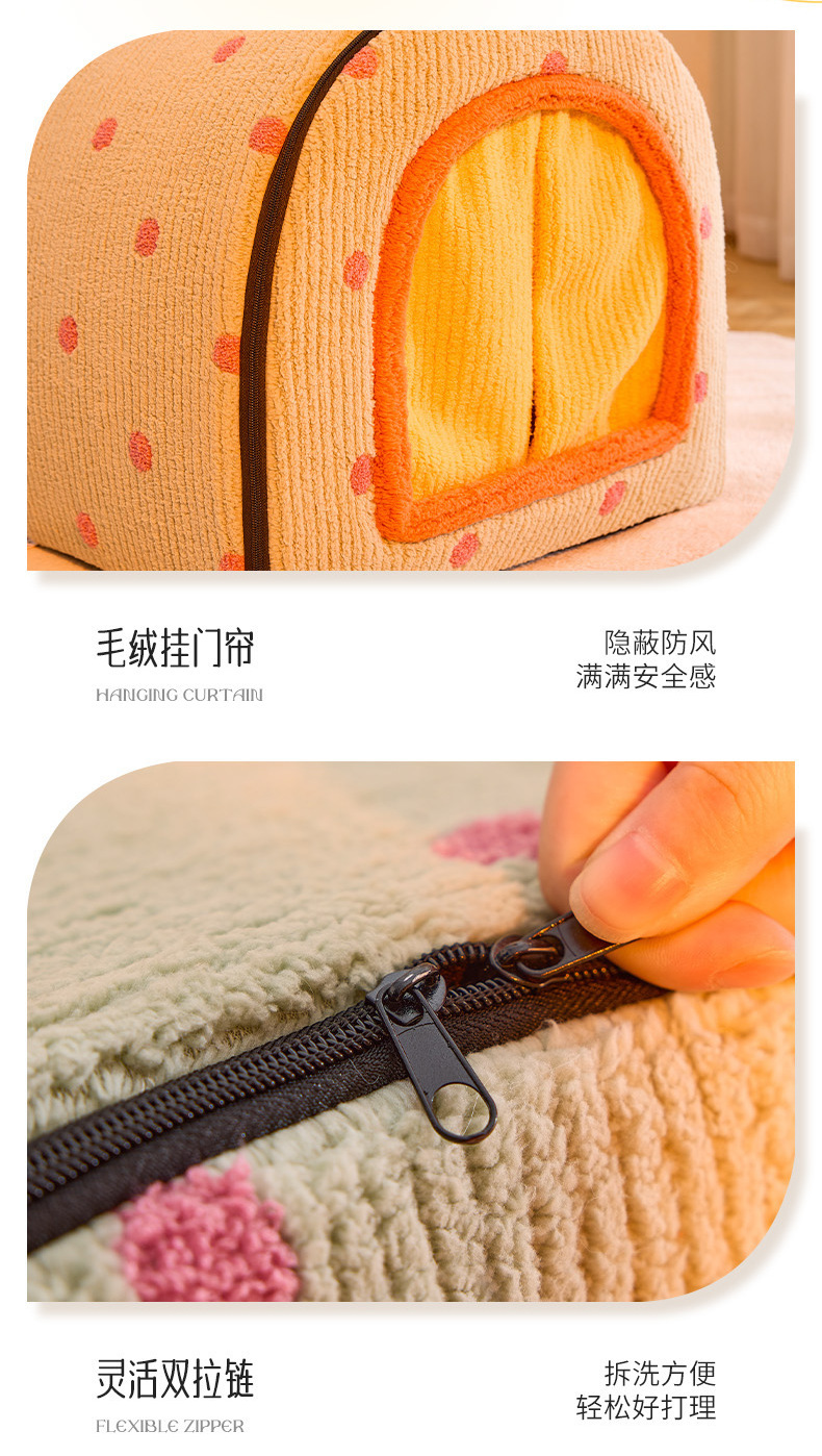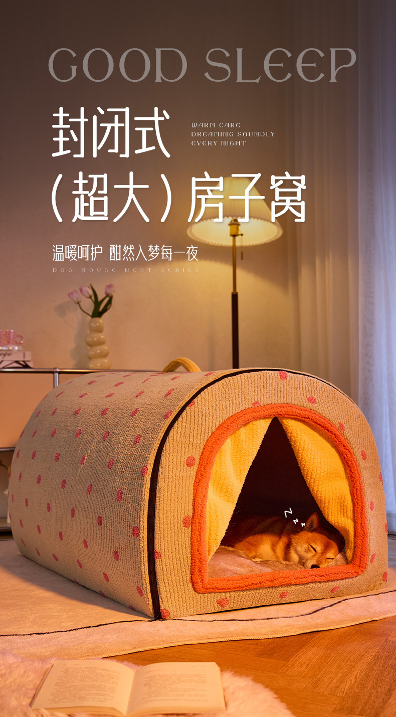 가을과 겨울 고양이 둥지 이동식 및 세척 가능한 개 침대 황금 머리 큰 개 둥지 닫힌 애완 동물 침대 개집 따뜻한 집 둥지