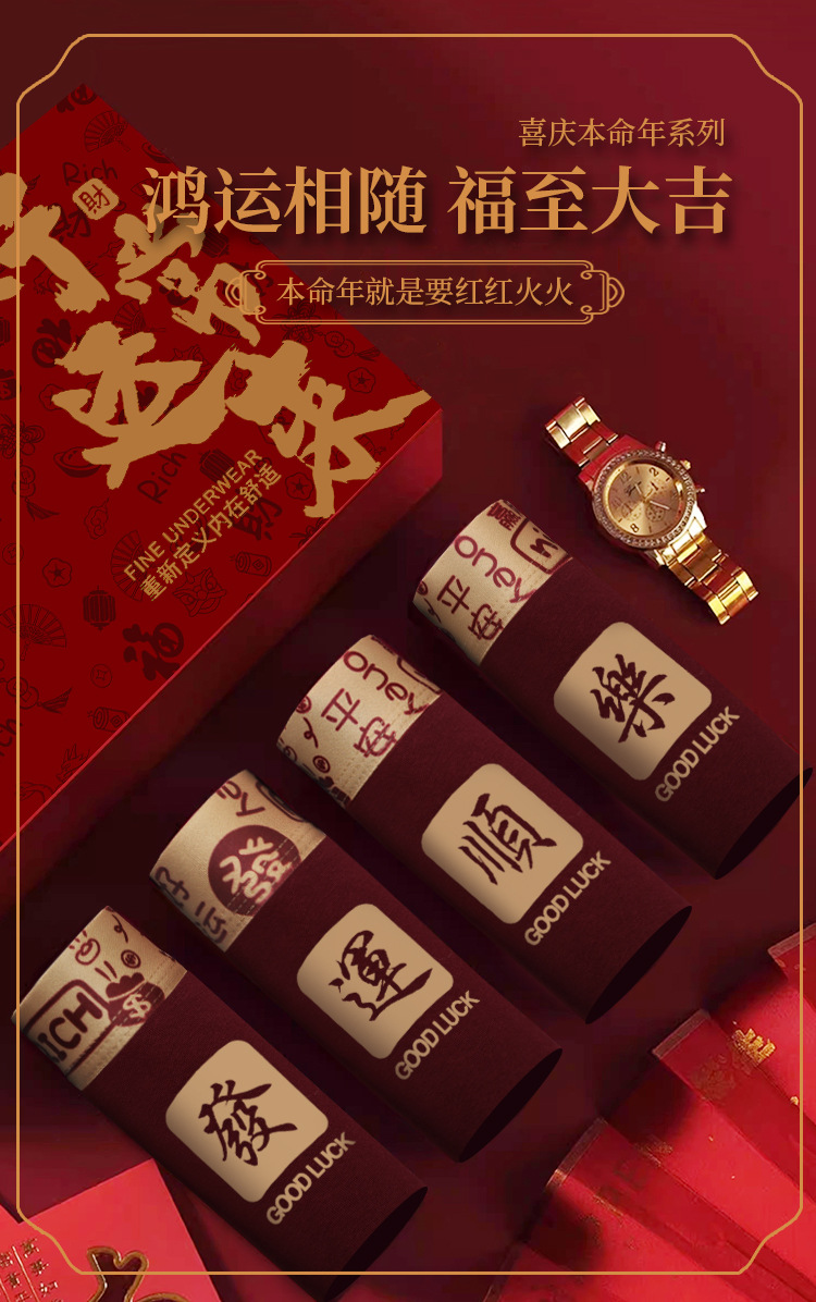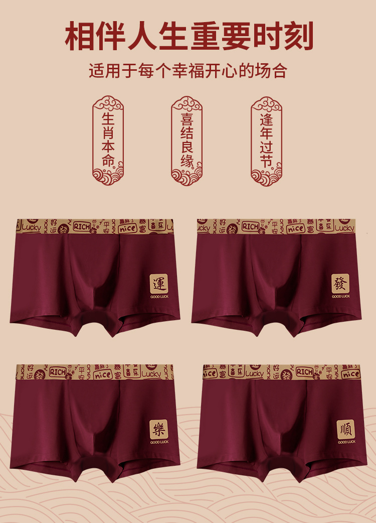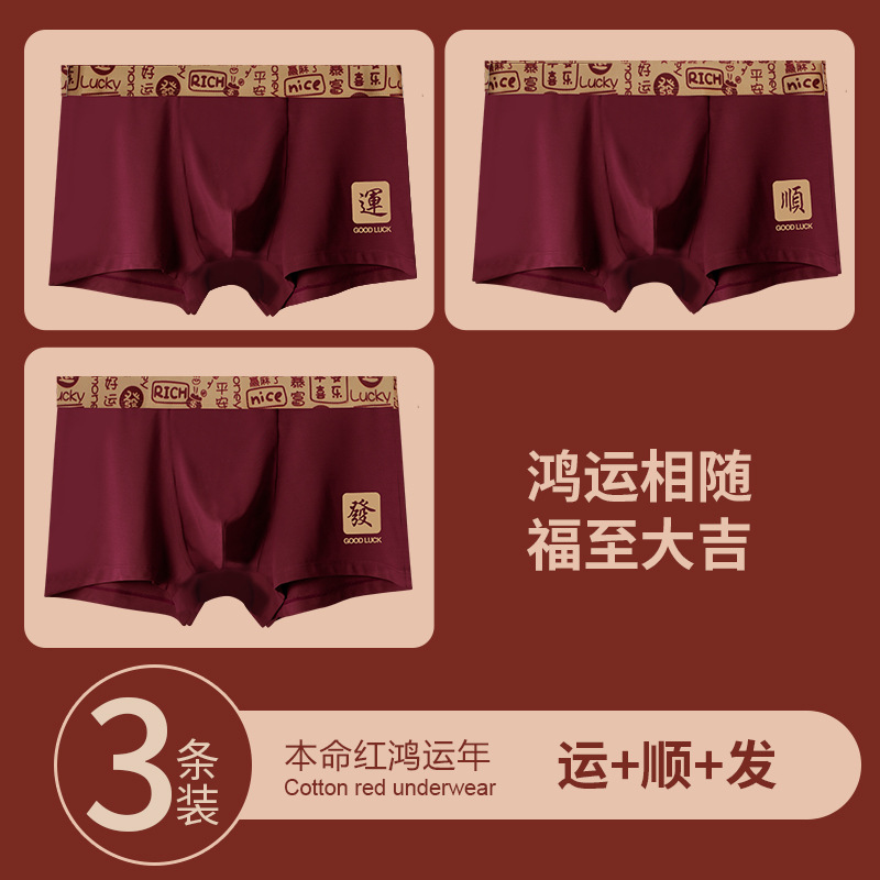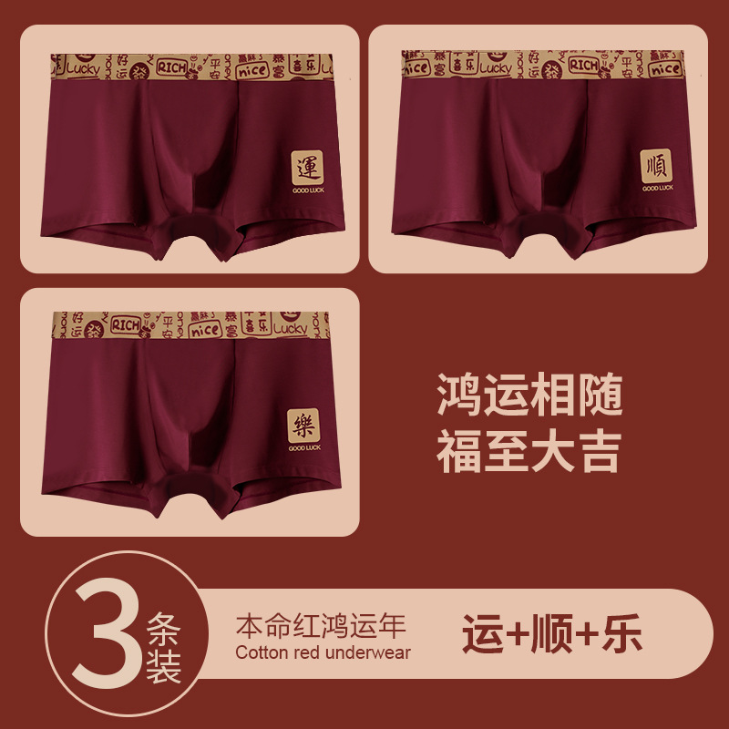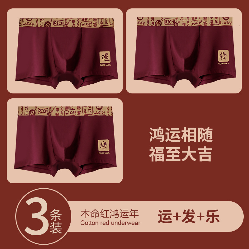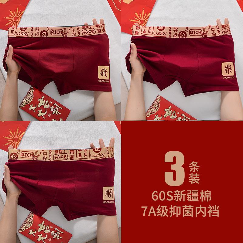 [선물 상자] 2025 년 올해 버건디 붉은 남성 속옷 면조 축제 권투 선수 권투 선수스토어 가기