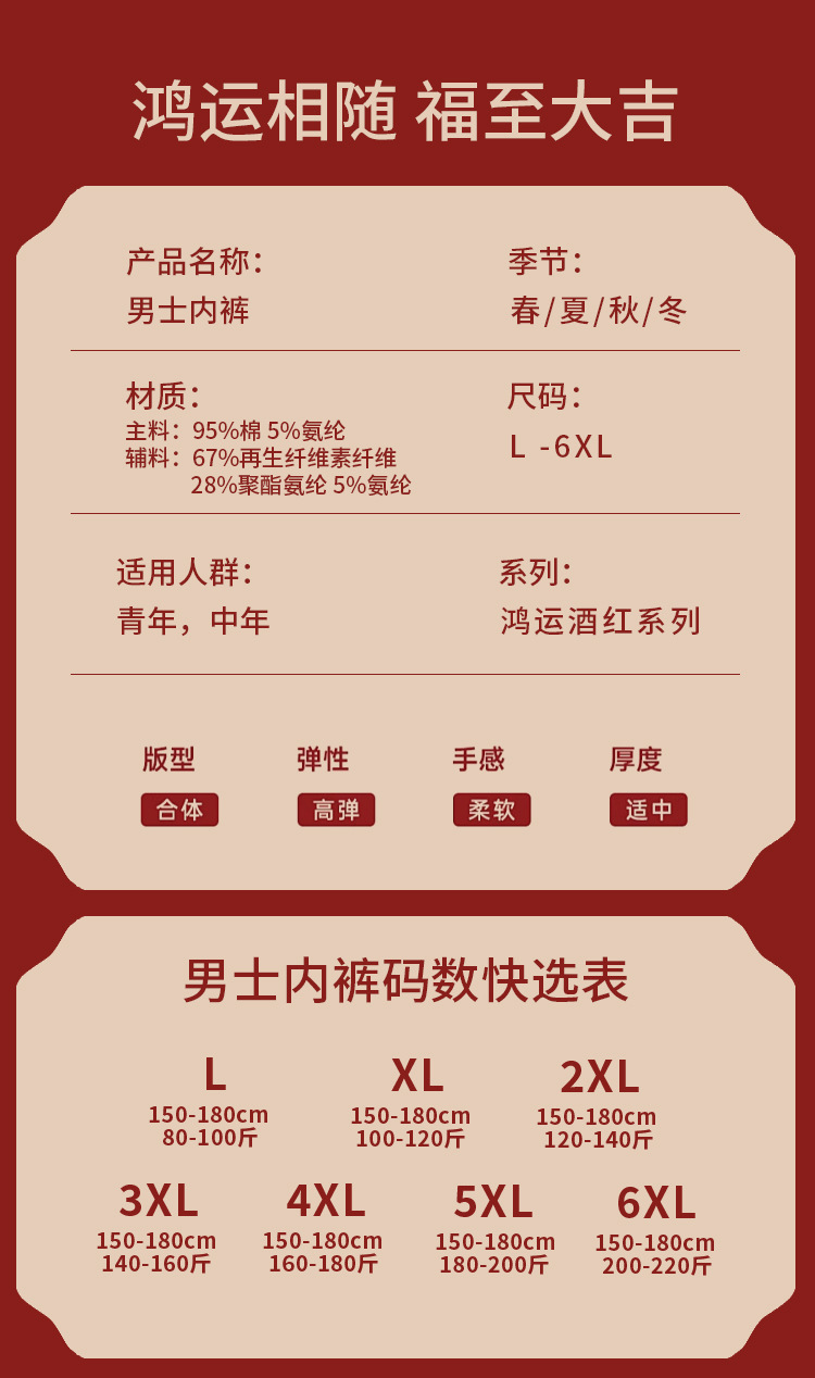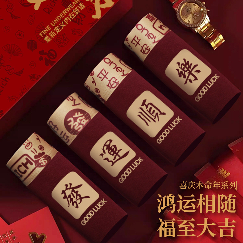 [선물 상자] 2025 년 올해 버건디 붉은 남성 속옷 면조 축제 권투 선수 권투 선수