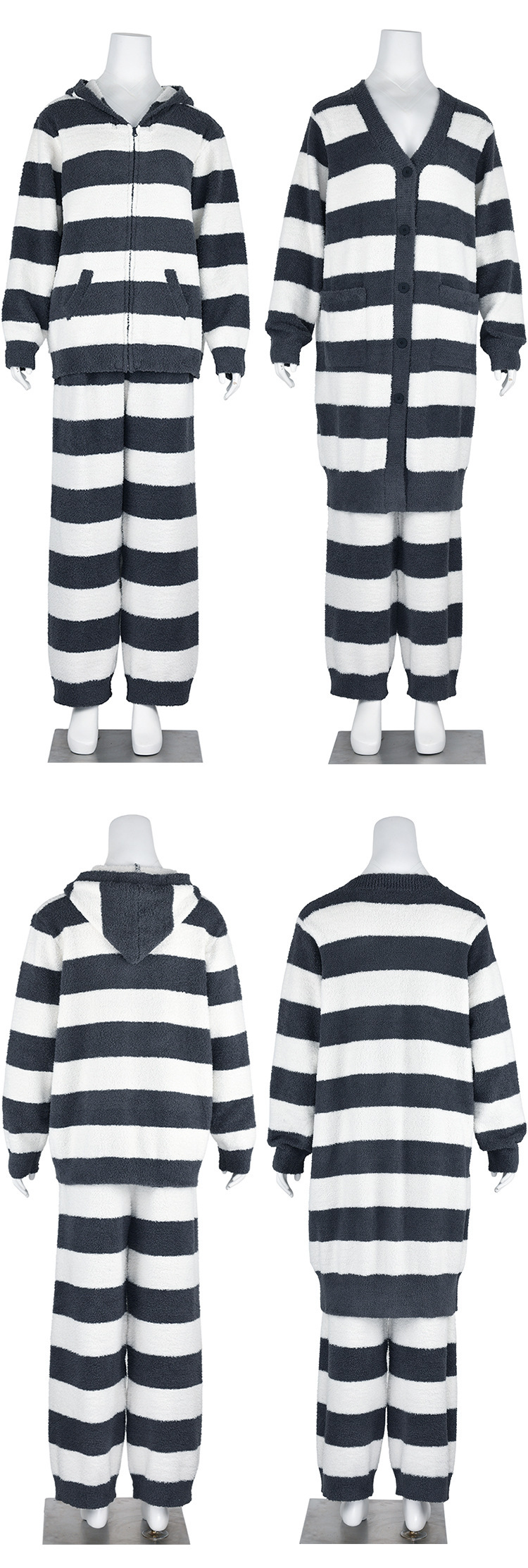 Wuyin 일본식 좋은 제품 여성용 난방 푹신한 원사 홈 옷 후드 카디건 가을과 겨울 코트 봉제 파자마 바지