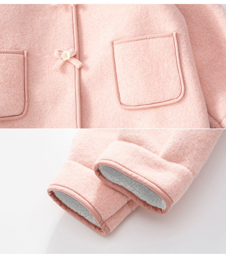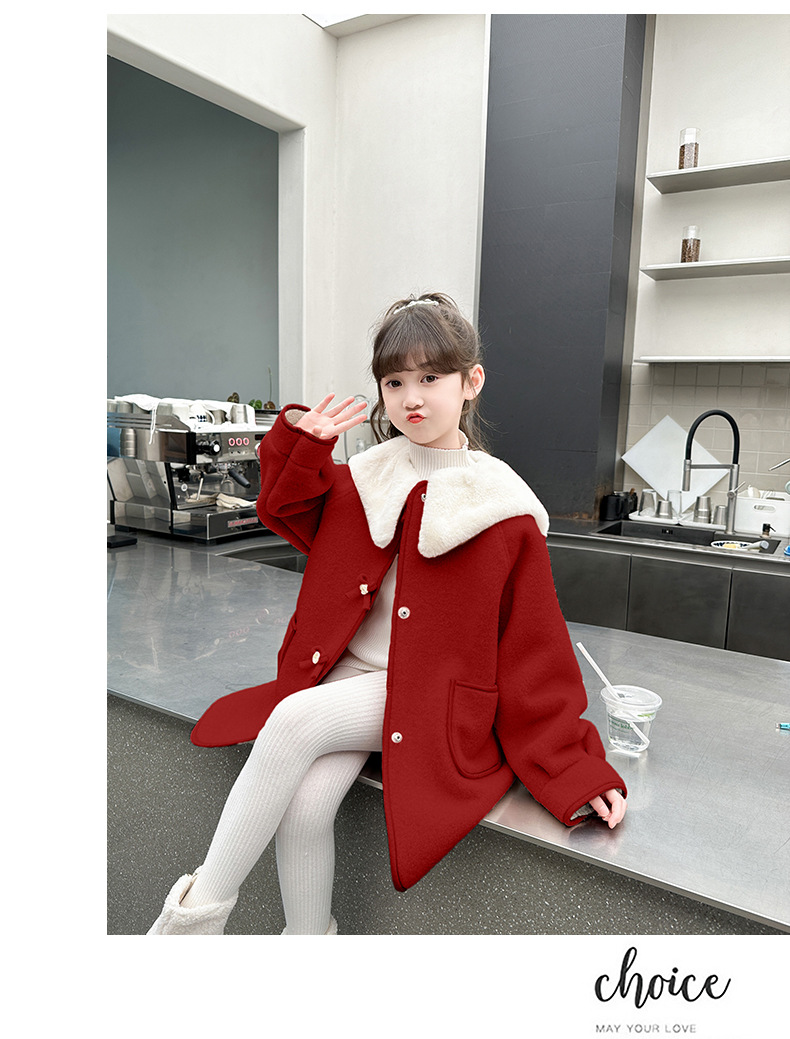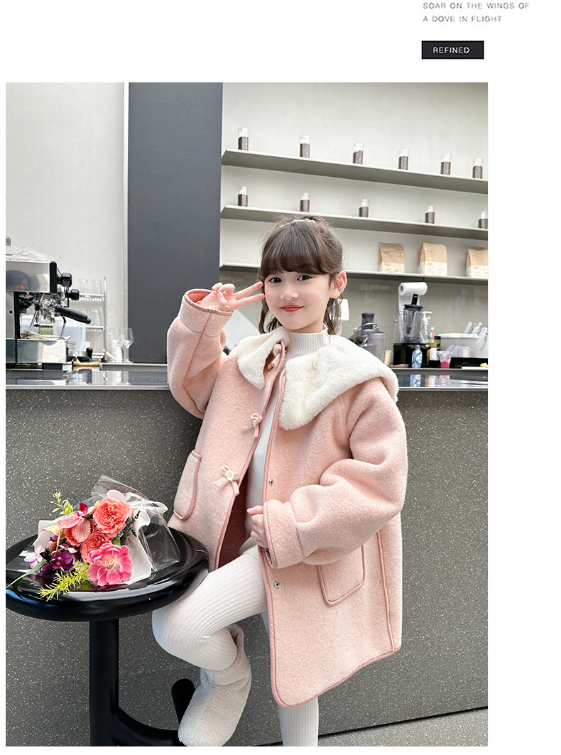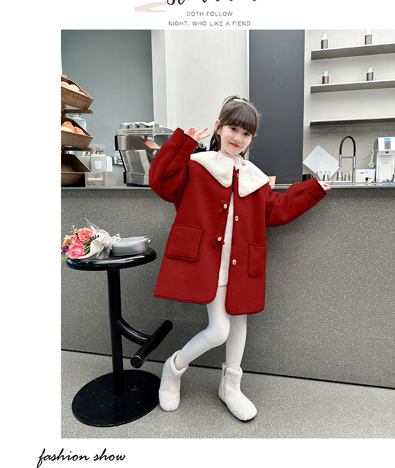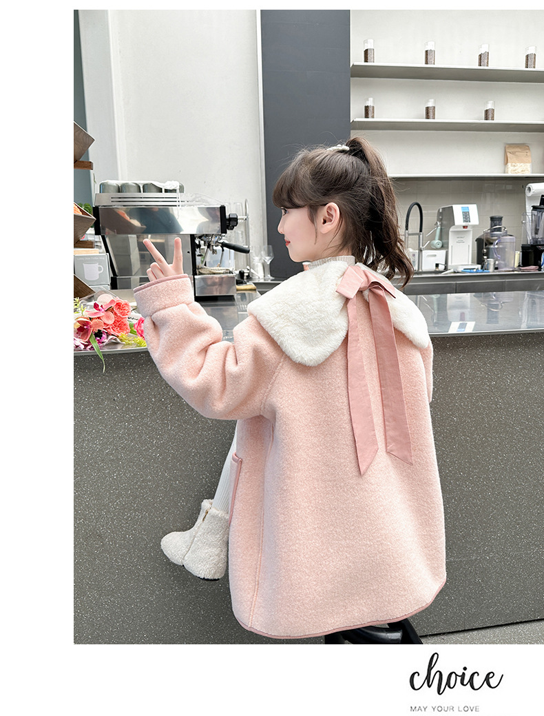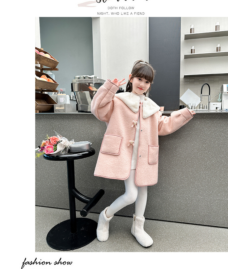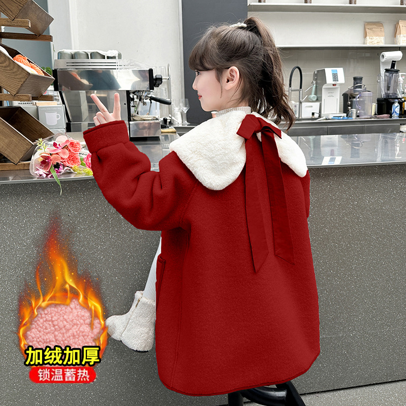 소녀의 모직 코트 겨울 2024 새로운 스타일 어린이 가을과 겨울 어린 소녀의 겨울 기모 탑스토어 가기