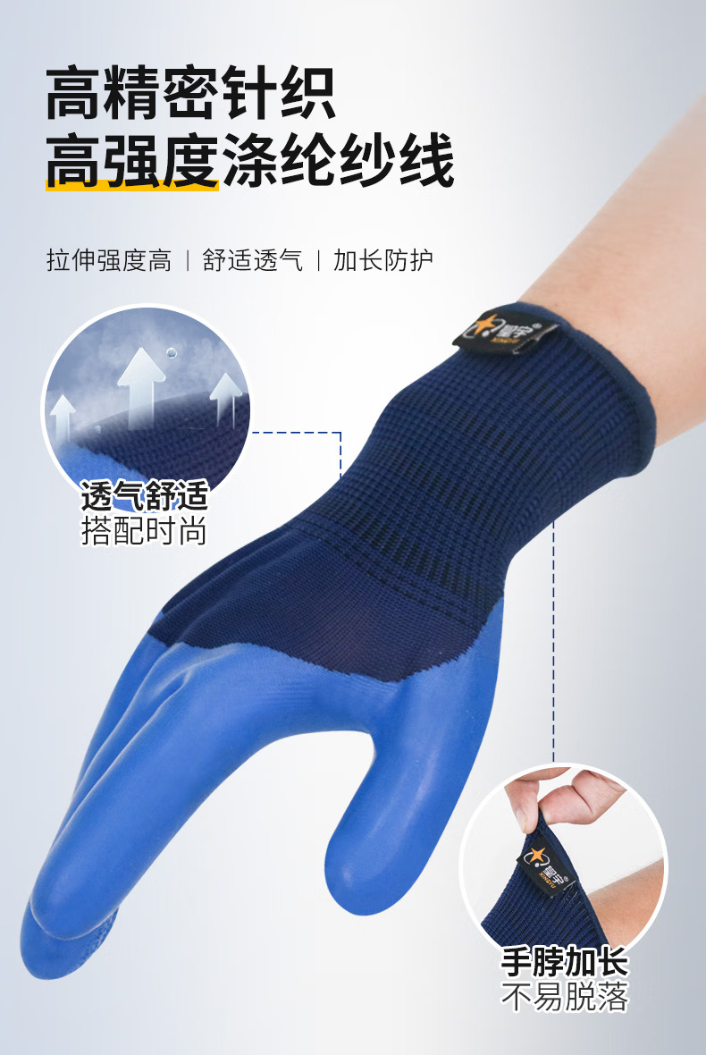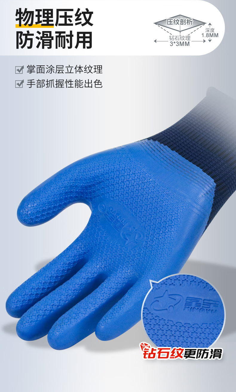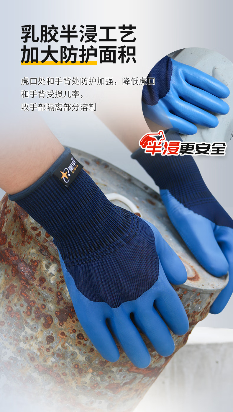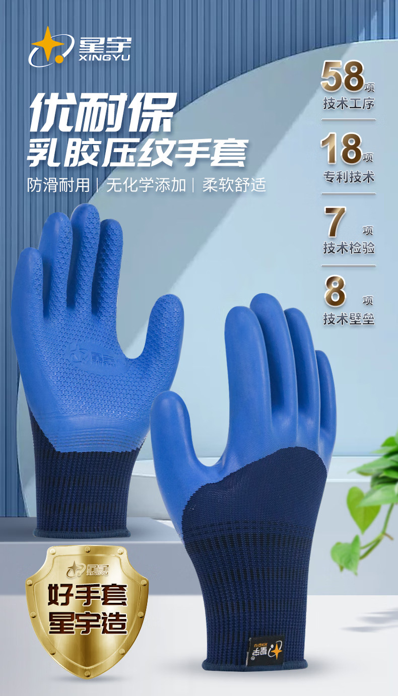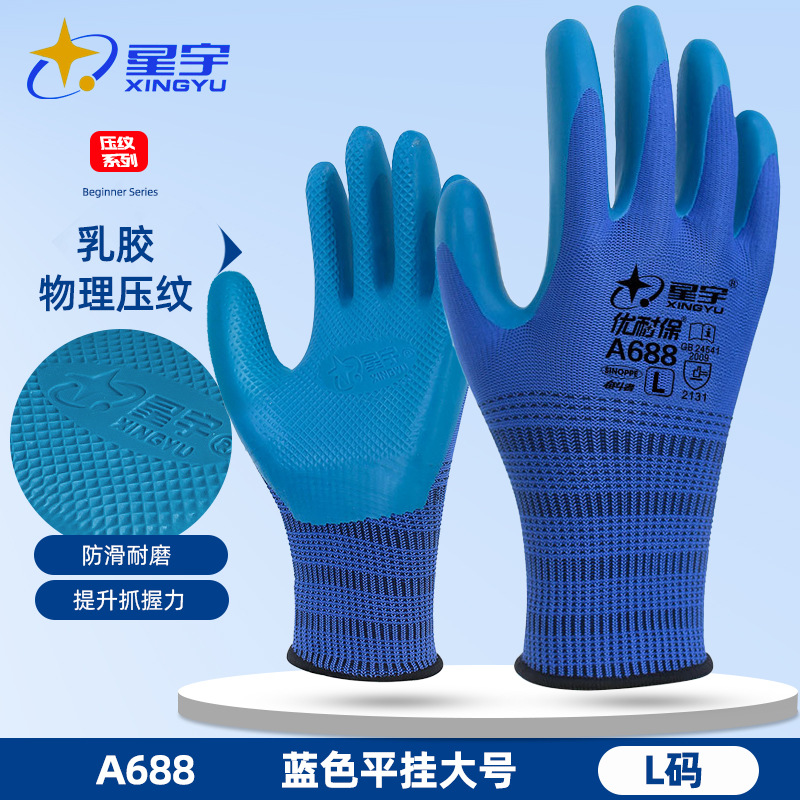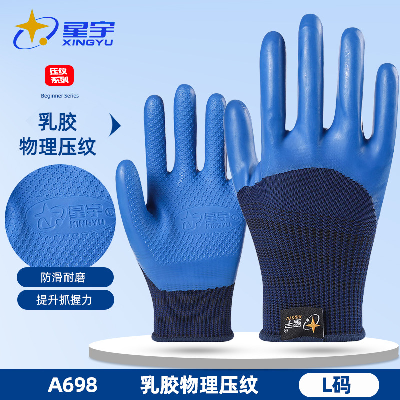 Xingyu 우수한 내마모성 장갑 A698 미끄럼 방지 통기성 장갑 방수 라텍스 건설 현장 작업 장갑스토어 가기