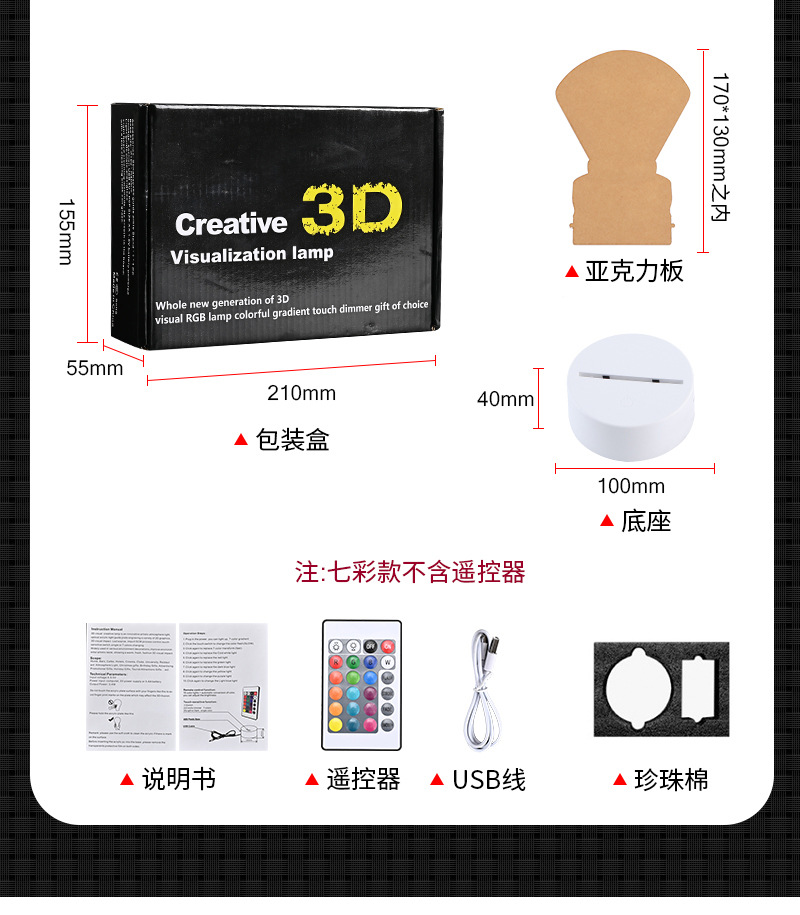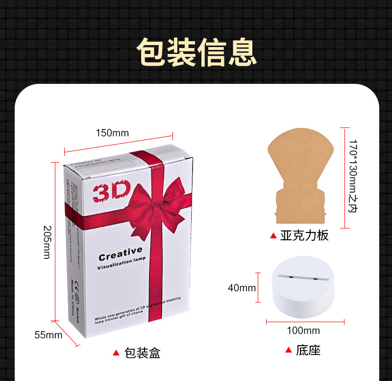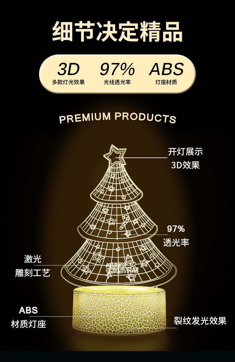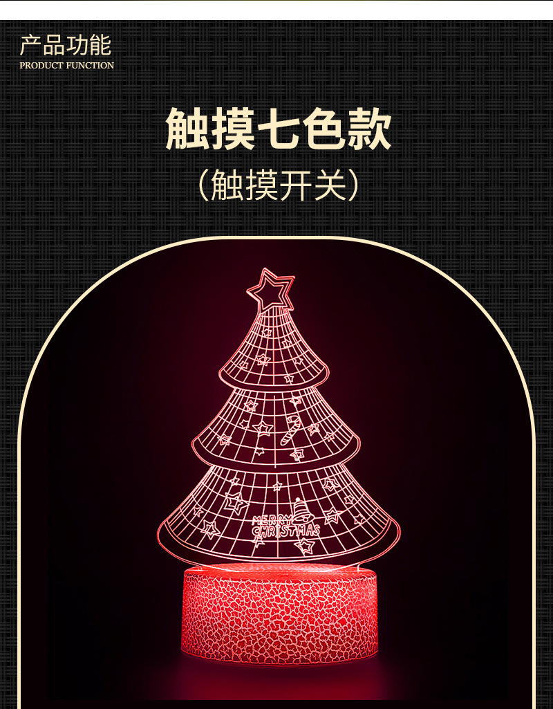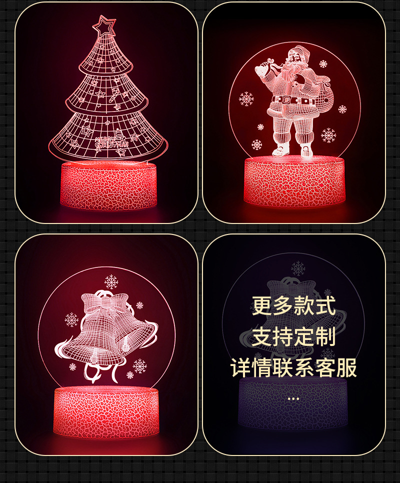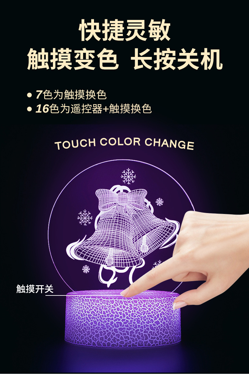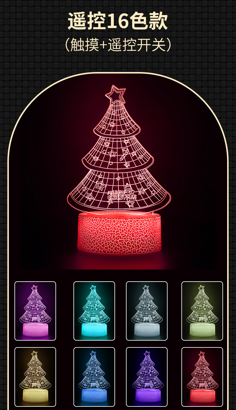 국경 창조적 인 크리스마스 선물 그물 빨간색 다채로운 원격 제어 터치 3d 아크릴 야간 조명 어린이 침실 장식품스토어 가기
