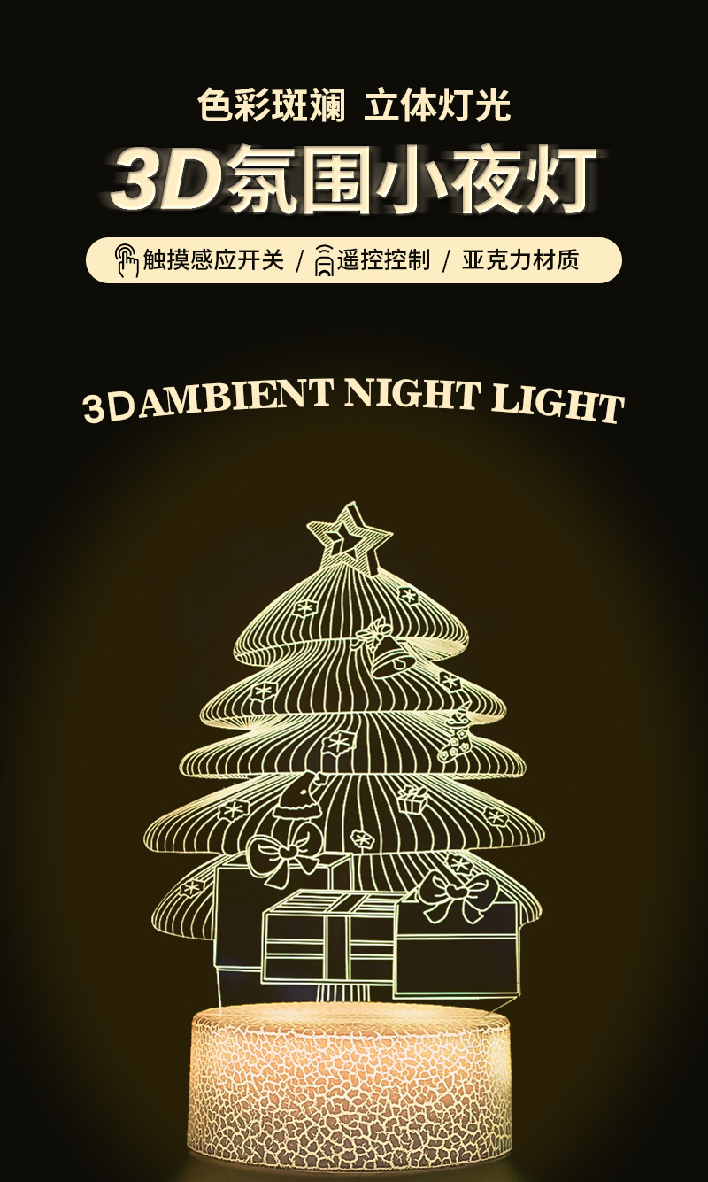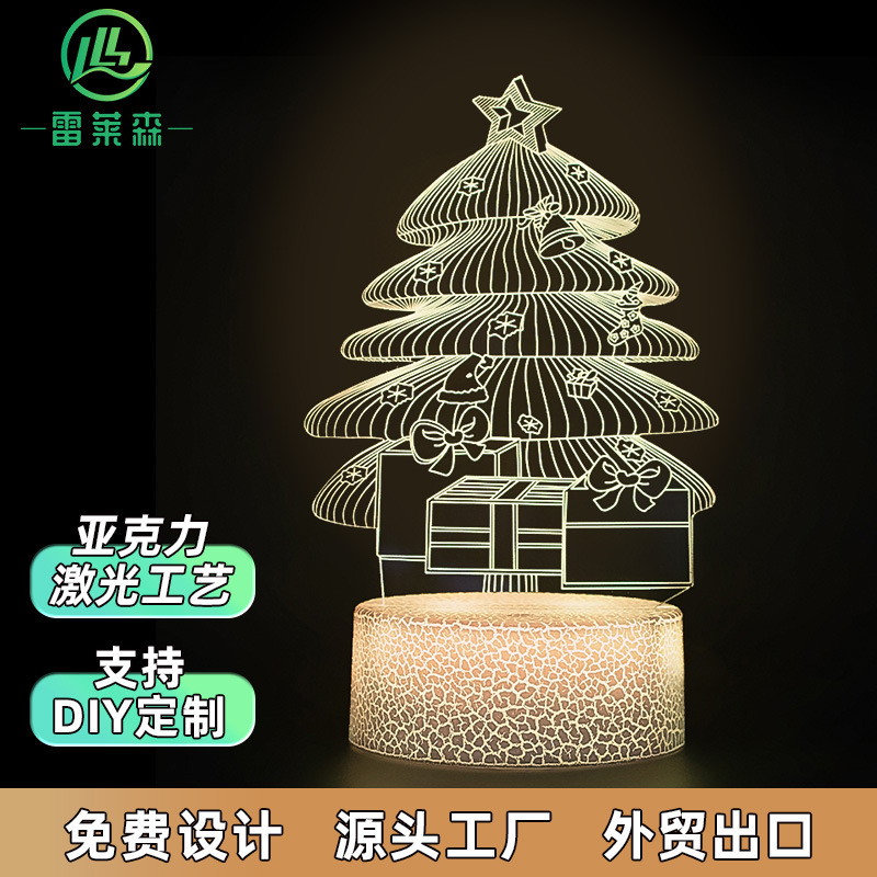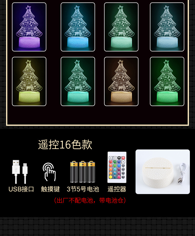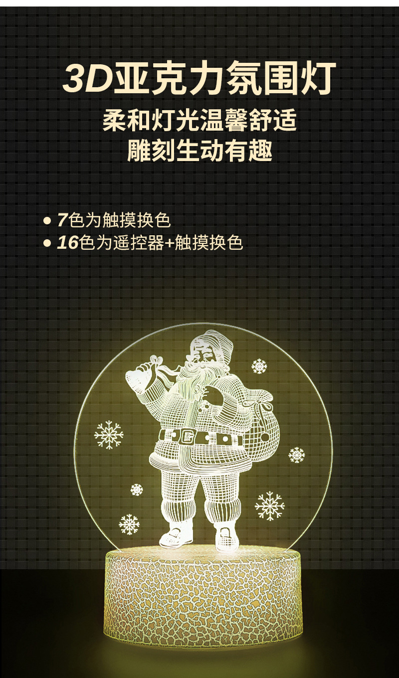 국경 창조적 인 크리스마스 선물 그물 빨간색 다채로운 원격 제어 터치 3d 아크릴 야간 조명 어린이 침실 장식품