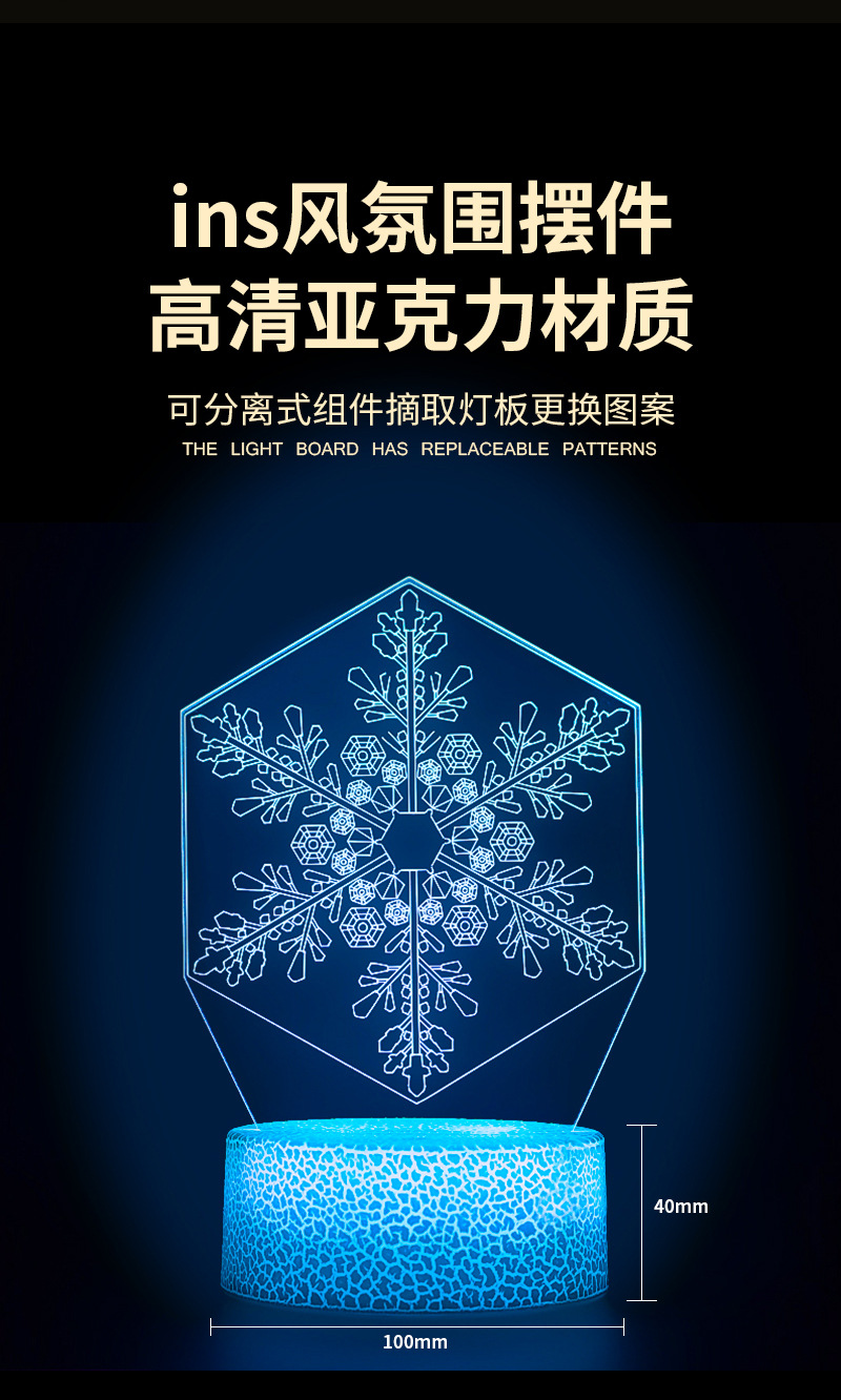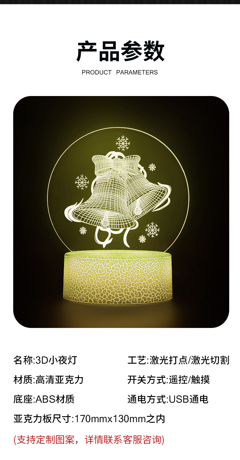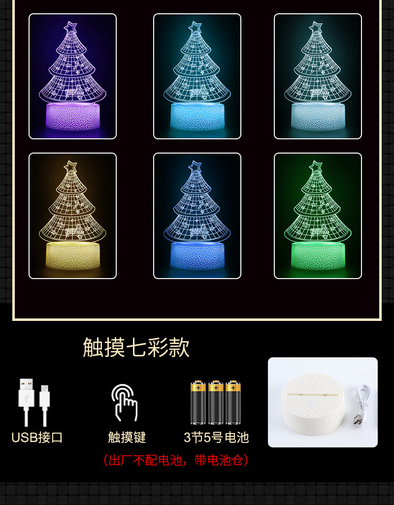 국경 창조적 인 크리스마스 선물 그물 빨간색 다채로운 원격 제어 터치 3d 아크릴 야간 조명 어린이 침실 장식품