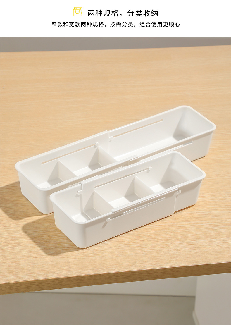• 商品名称:日式可伸缩餐具分隔储物盒 抽屉分类收纳盒--窄款(8094)