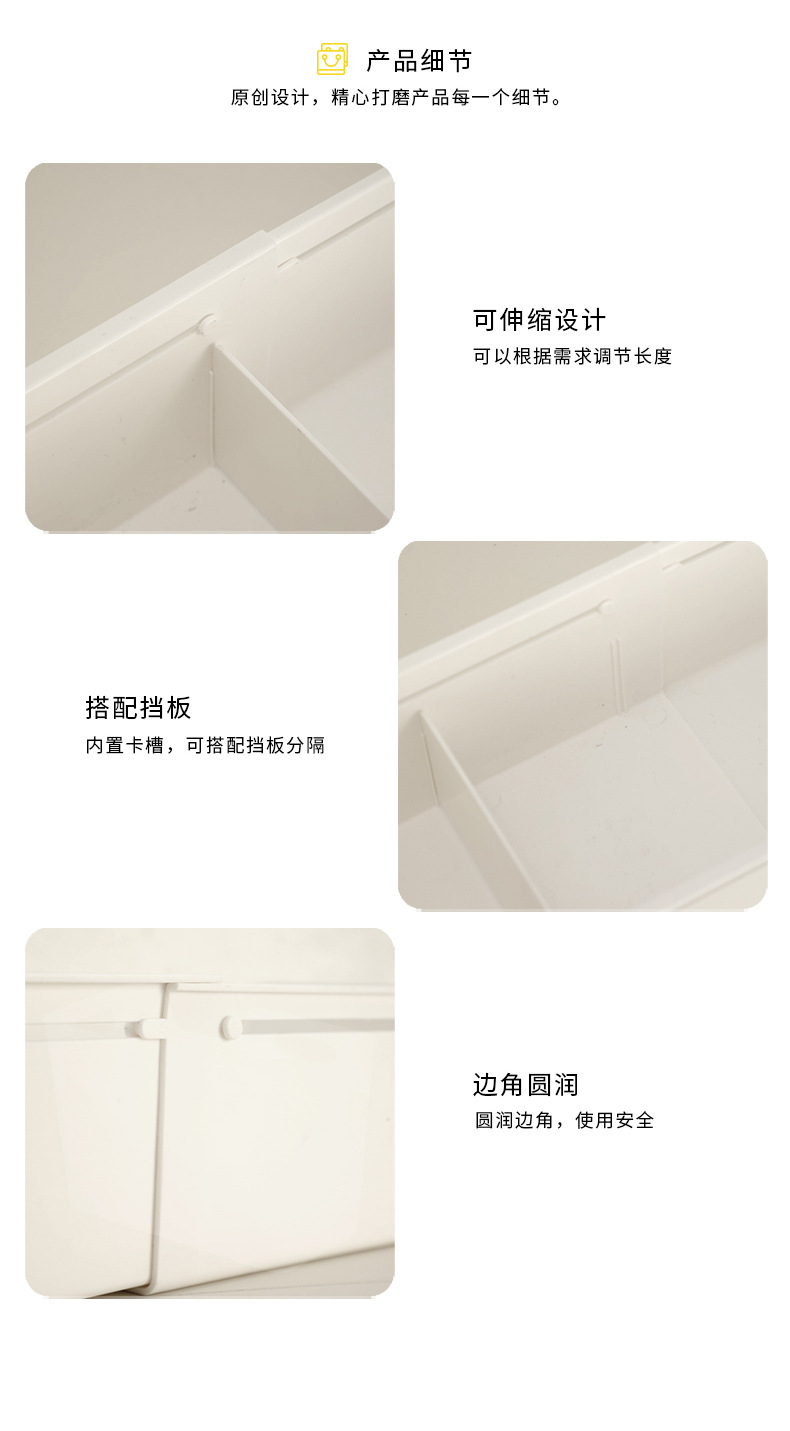 • 商品名称:日式可伸缩餐具分隔储物盒 抽屉分类收纳盒--宽款(8095)