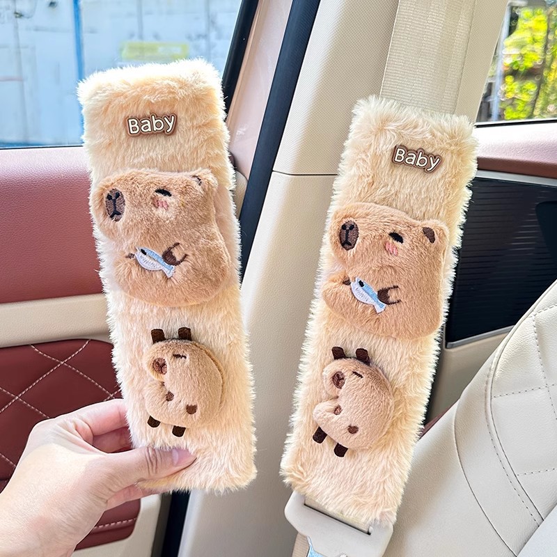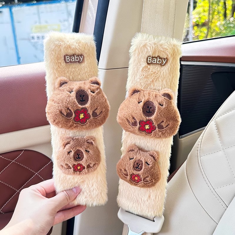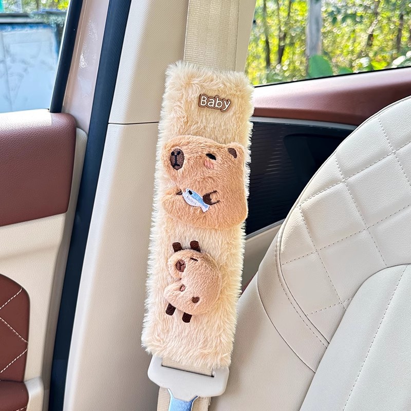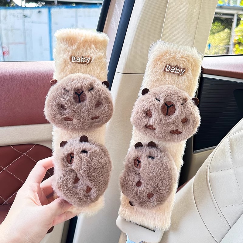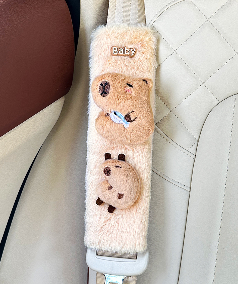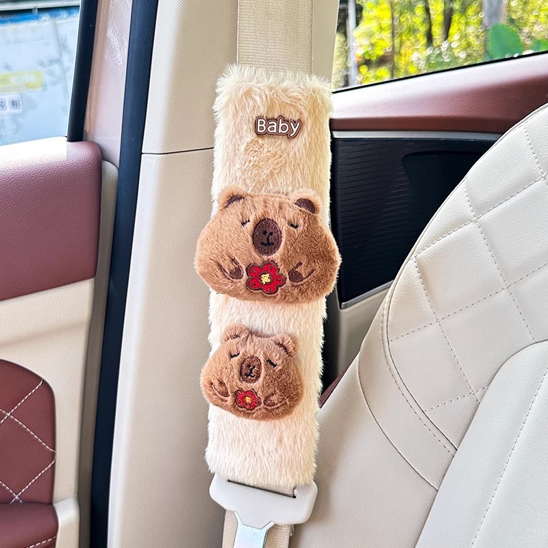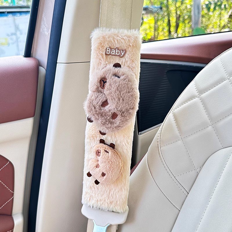 카피 바라 자동차 시트 벨트 어깨 패드 자동차 인테리어 장식 귀여운 겨울 봉제 인형 안전 벨트 여성스토어 가기